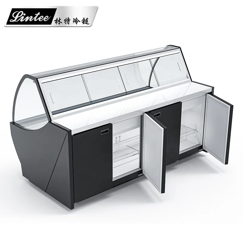 Lintee supermarket food fresh meat display cooler commercial refrigerator cake chiller
