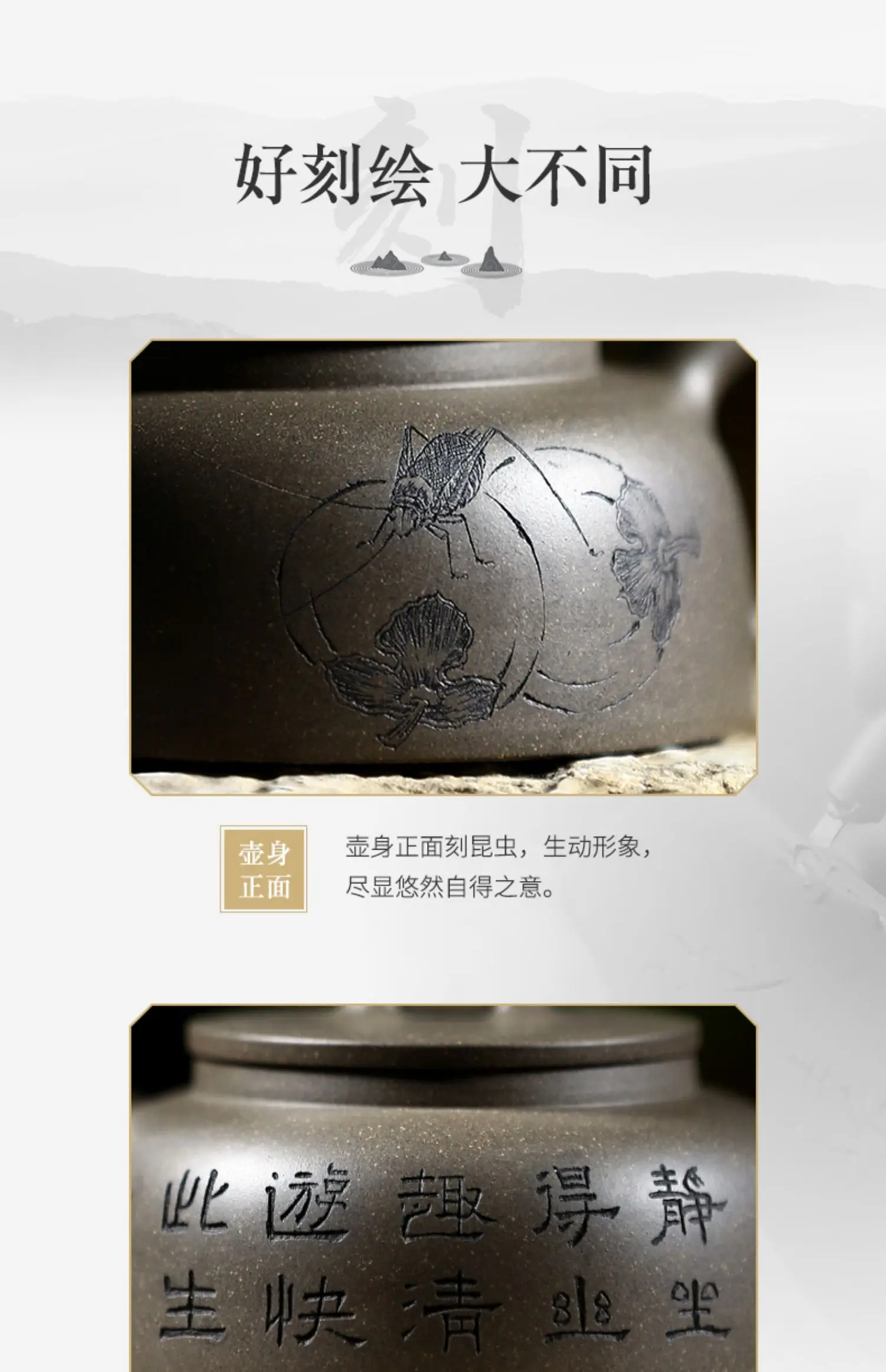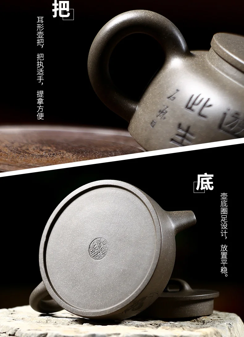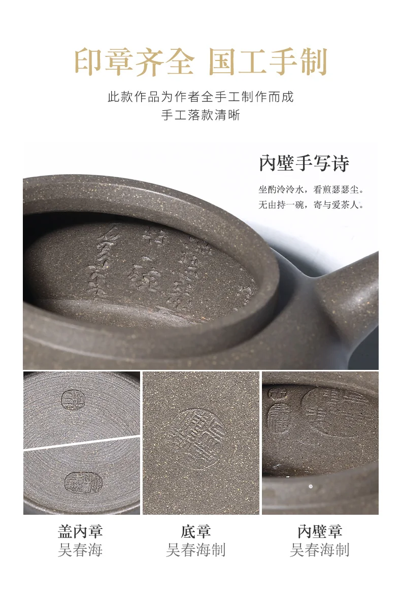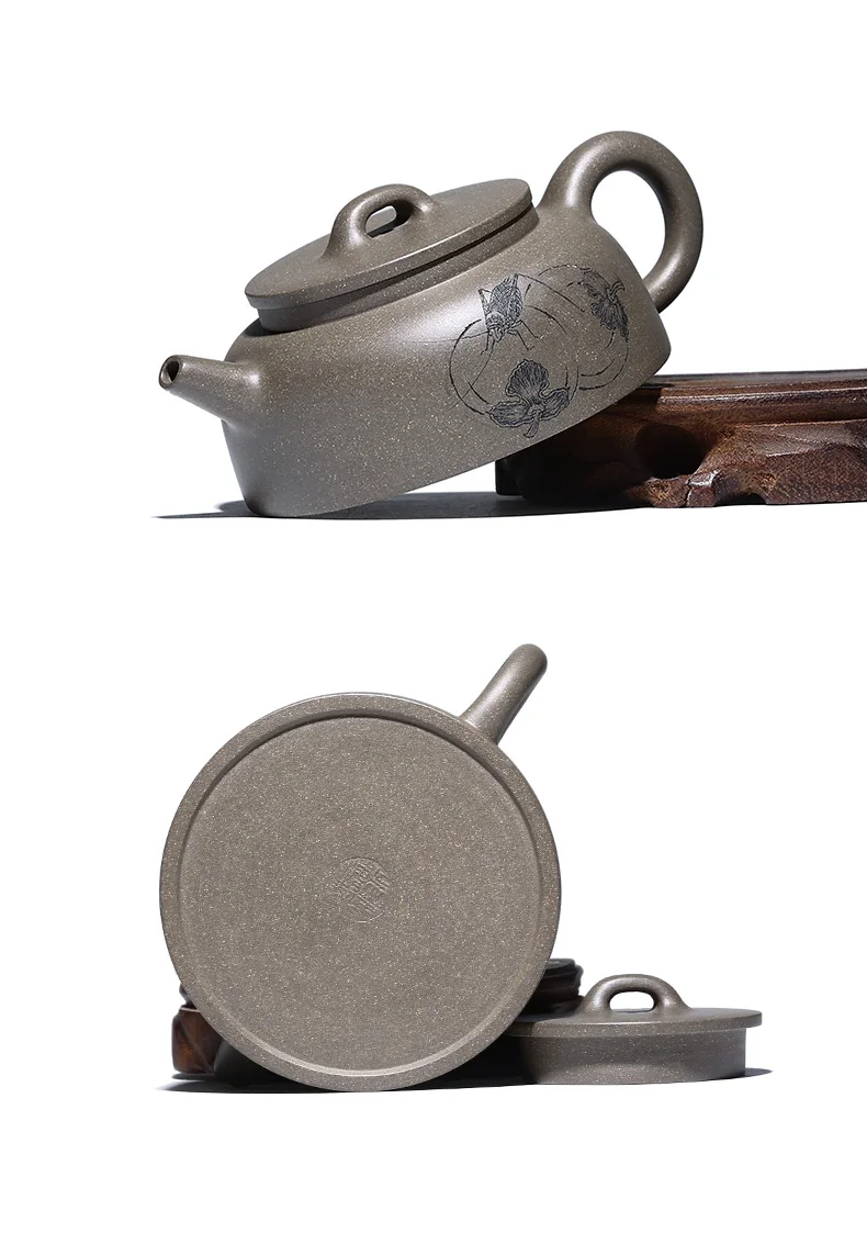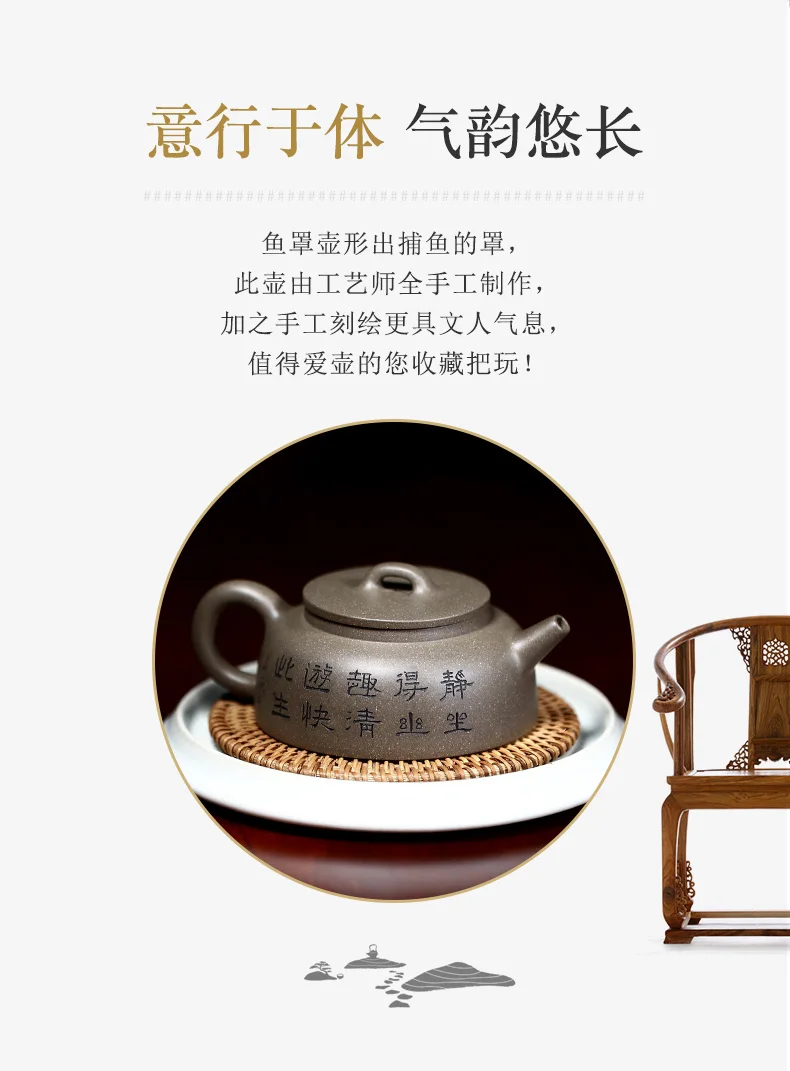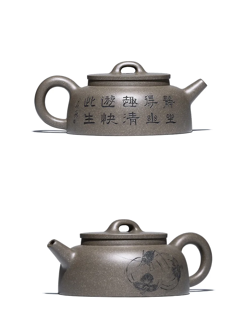 |True art engraving pure manual teapot yixing are recommended by kung fu tea green cover period of mud fish pot