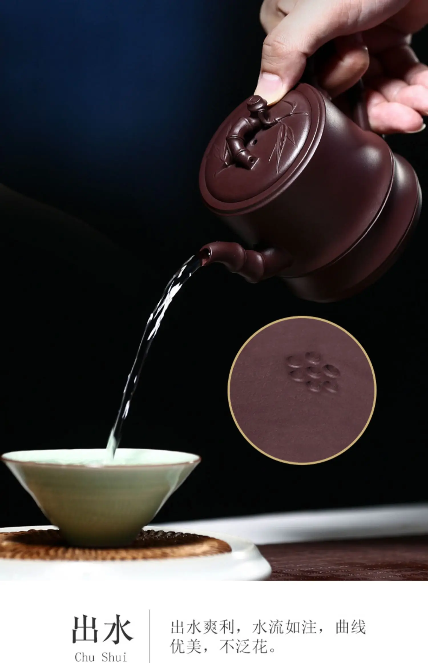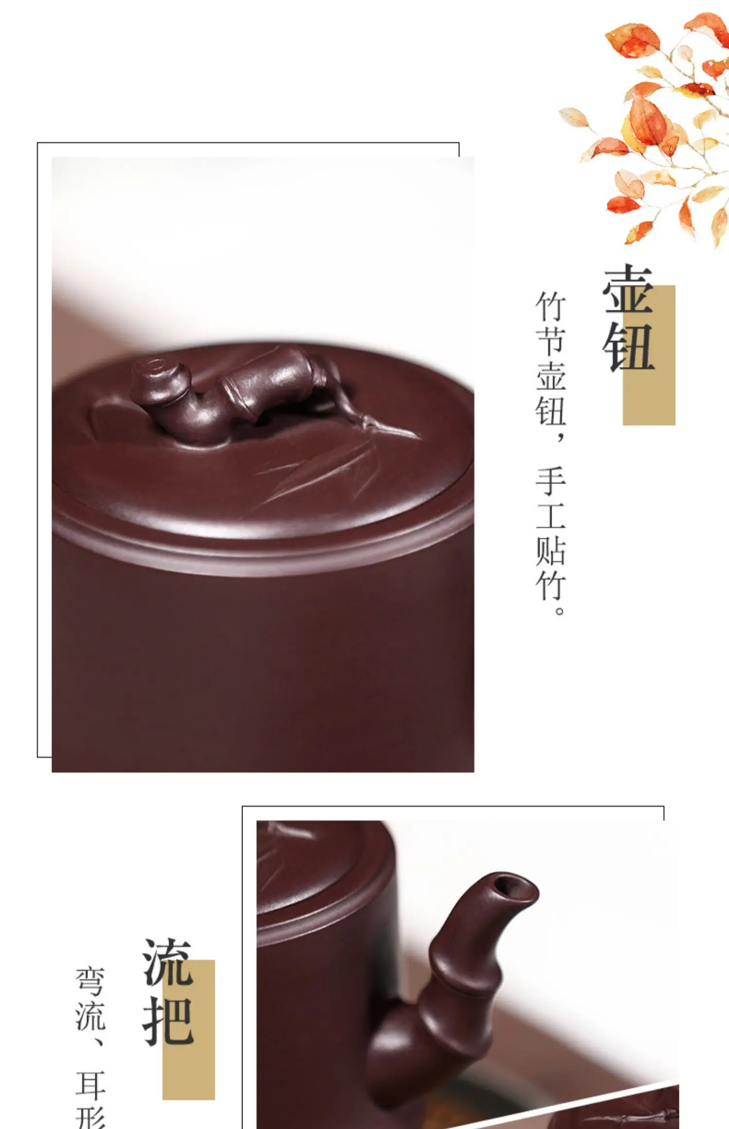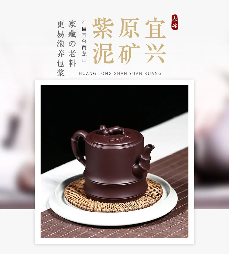 |True art yixing recommended pure manual teapot carved painting famous tea bamboo pot of ores in the mud