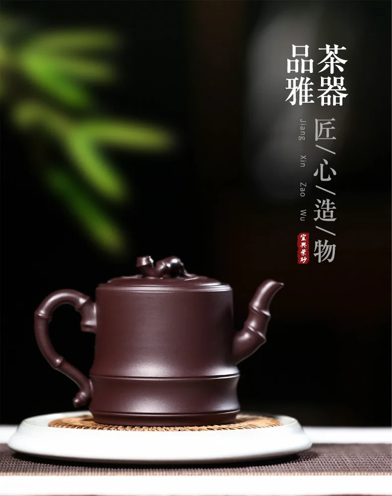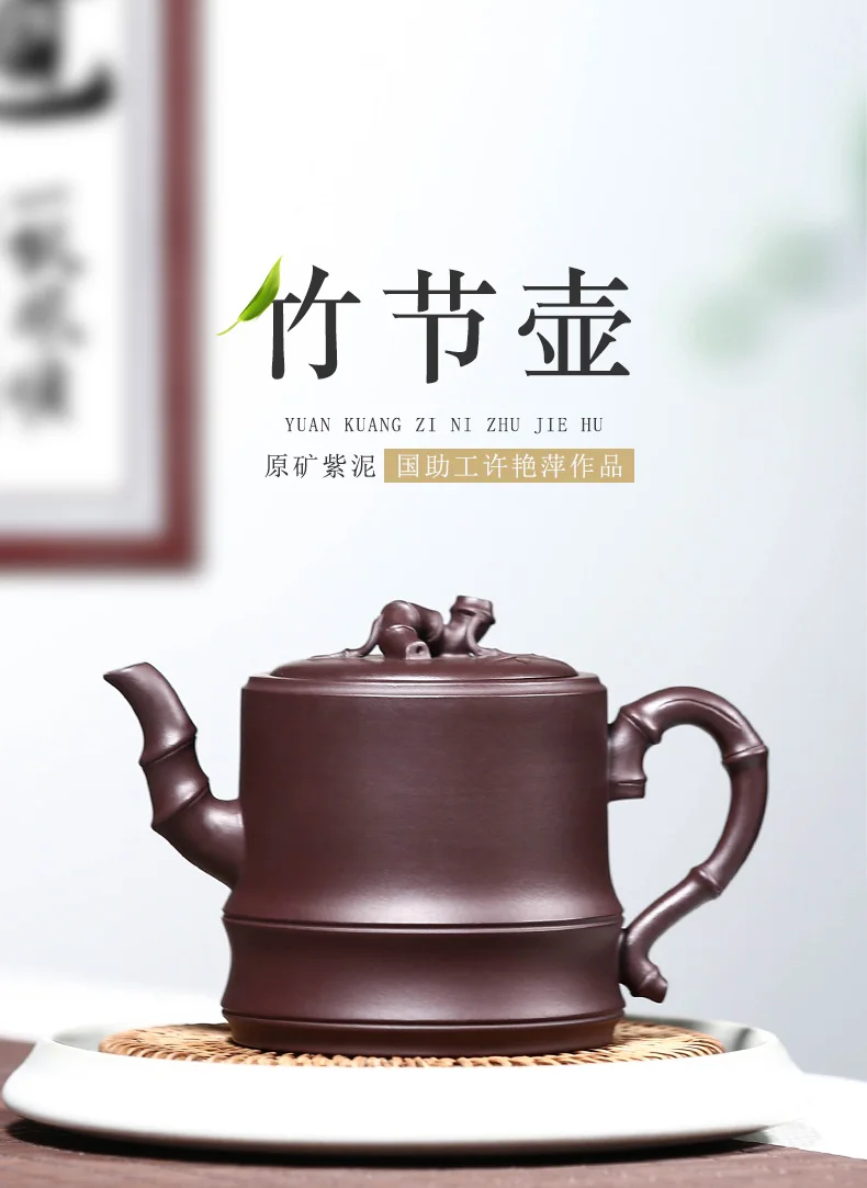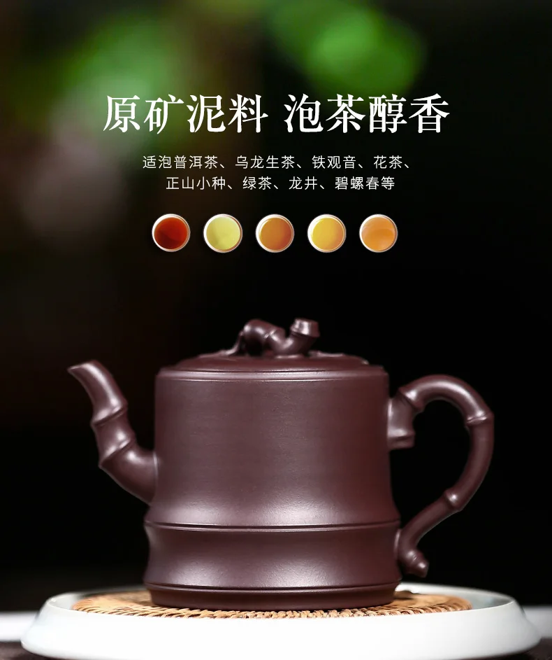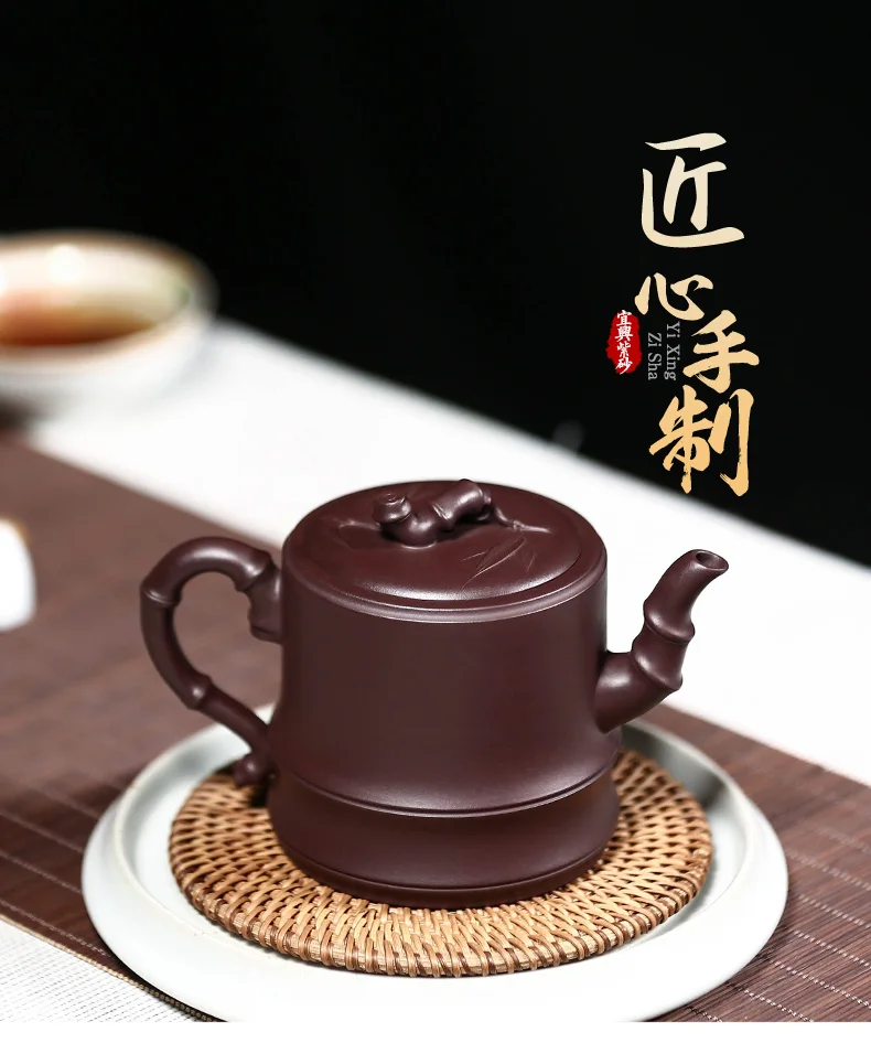 |True art yixing recommended pure manual teapot carved painting famous tea bamboo pot of ores in the mud