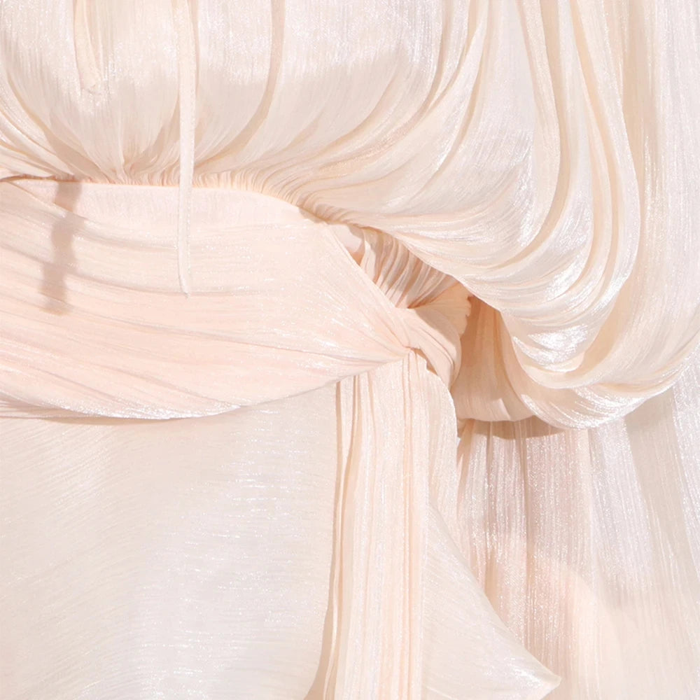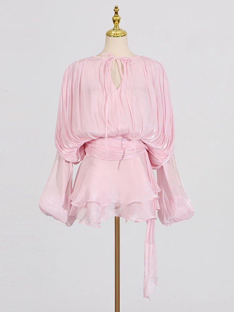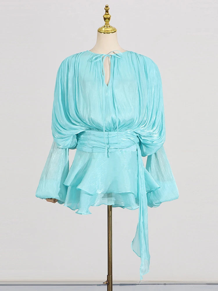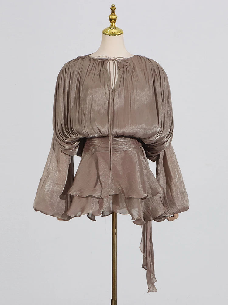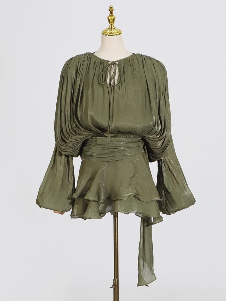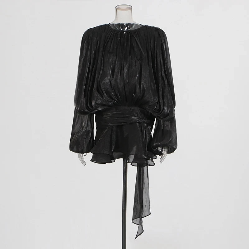 TWOTWINSTYLE Loose Solid Dresses For Women Round Neck Lantern Sleeve High Waist Spliced Fold Mini Chic Dress Female Fashion 2025