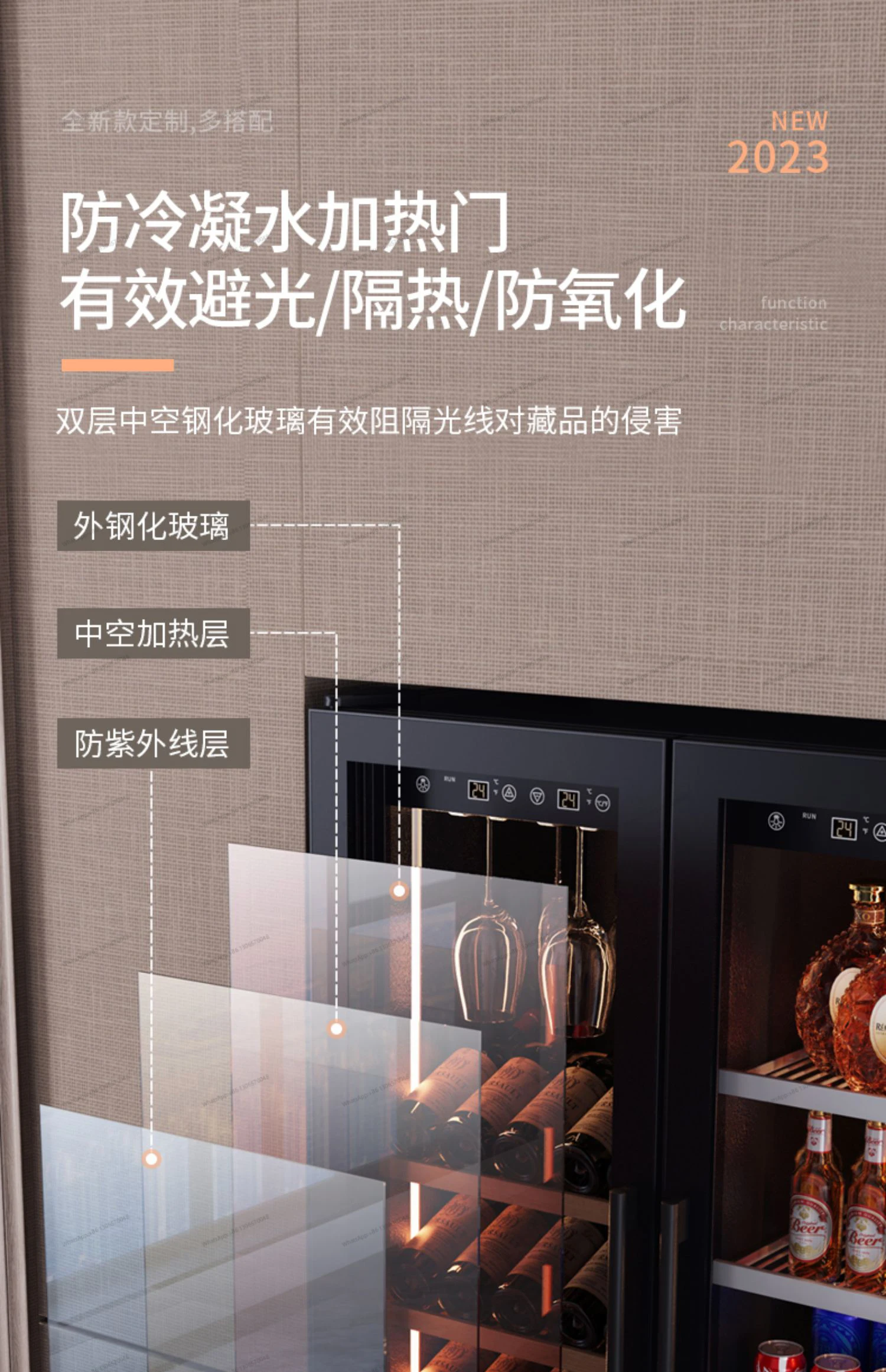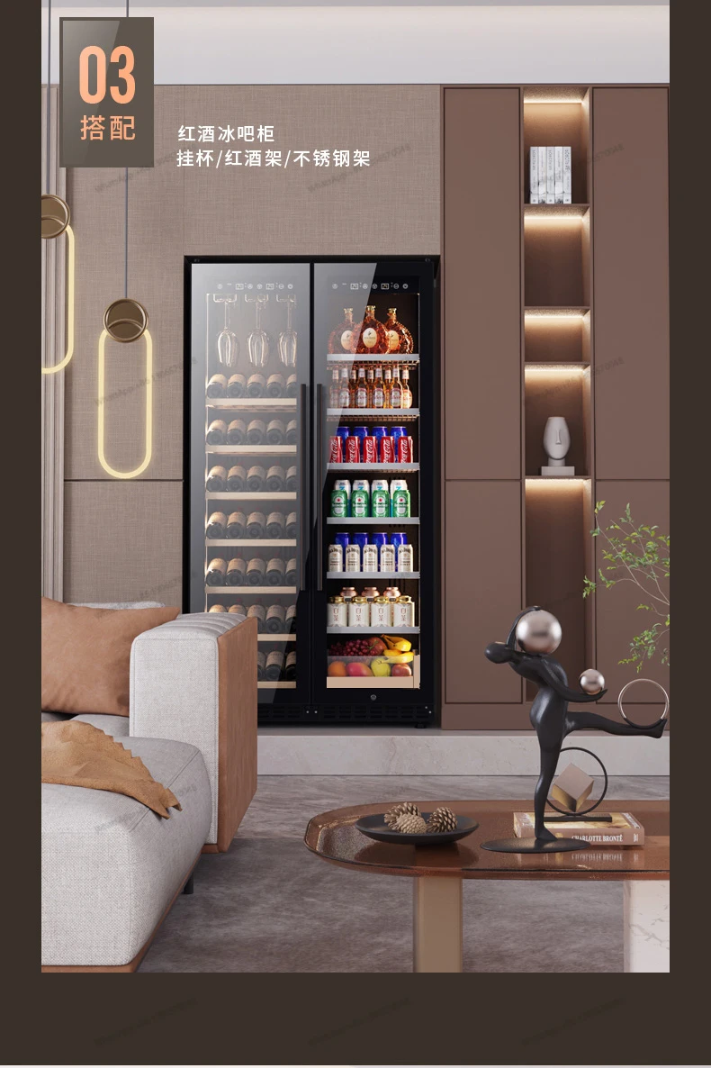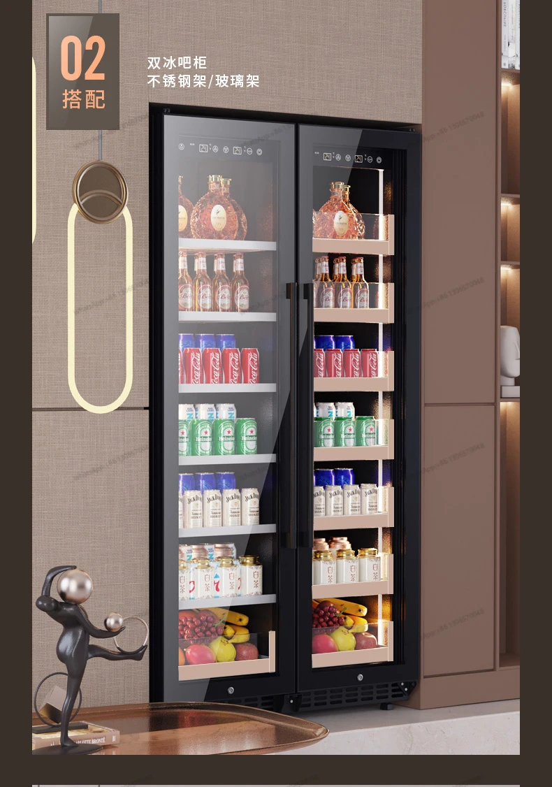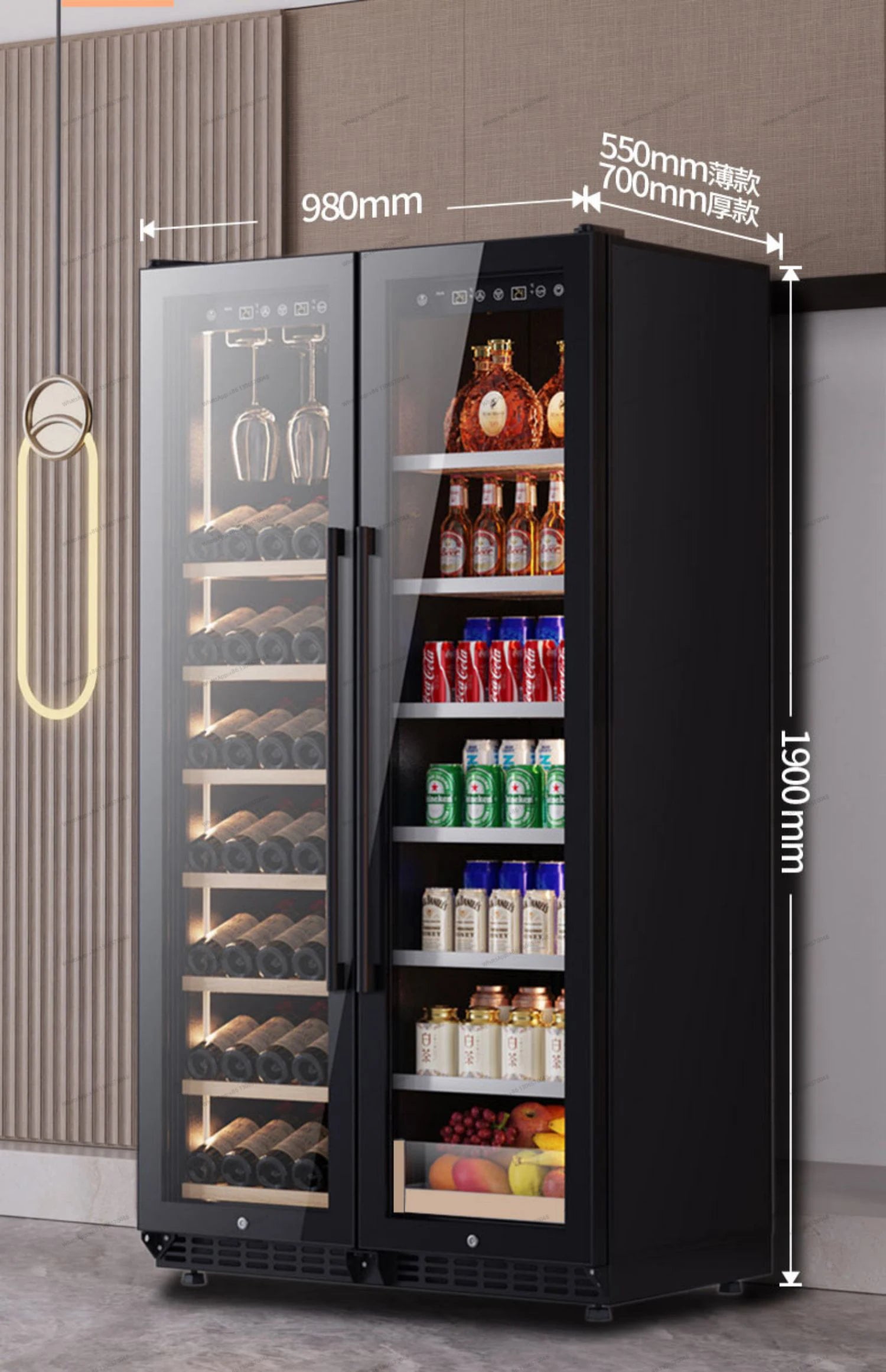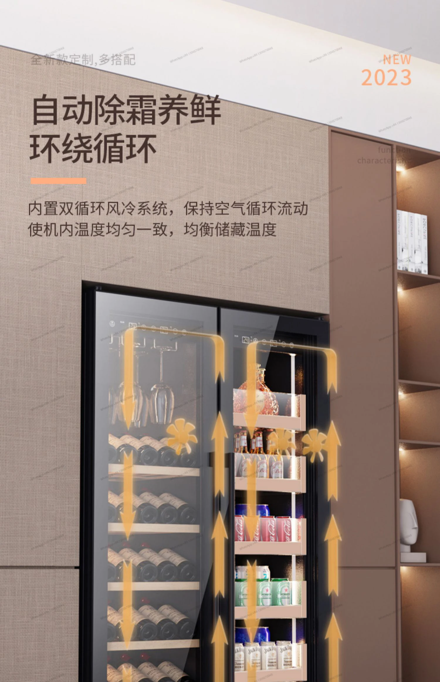 Ultra thin double door red wine cabinet, constant temperature wine cabinet, embedded ice bar, home living room, tea beverage ref