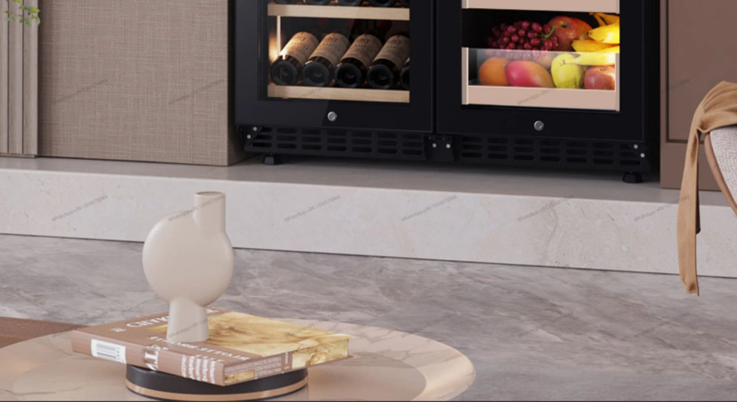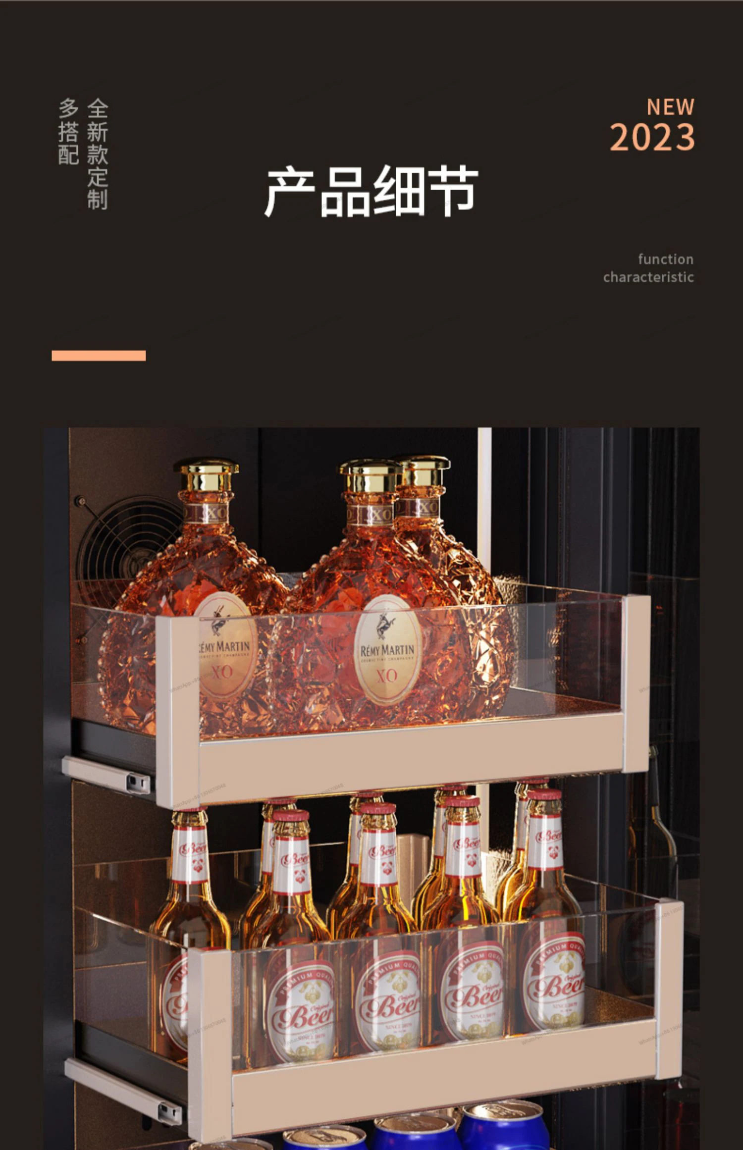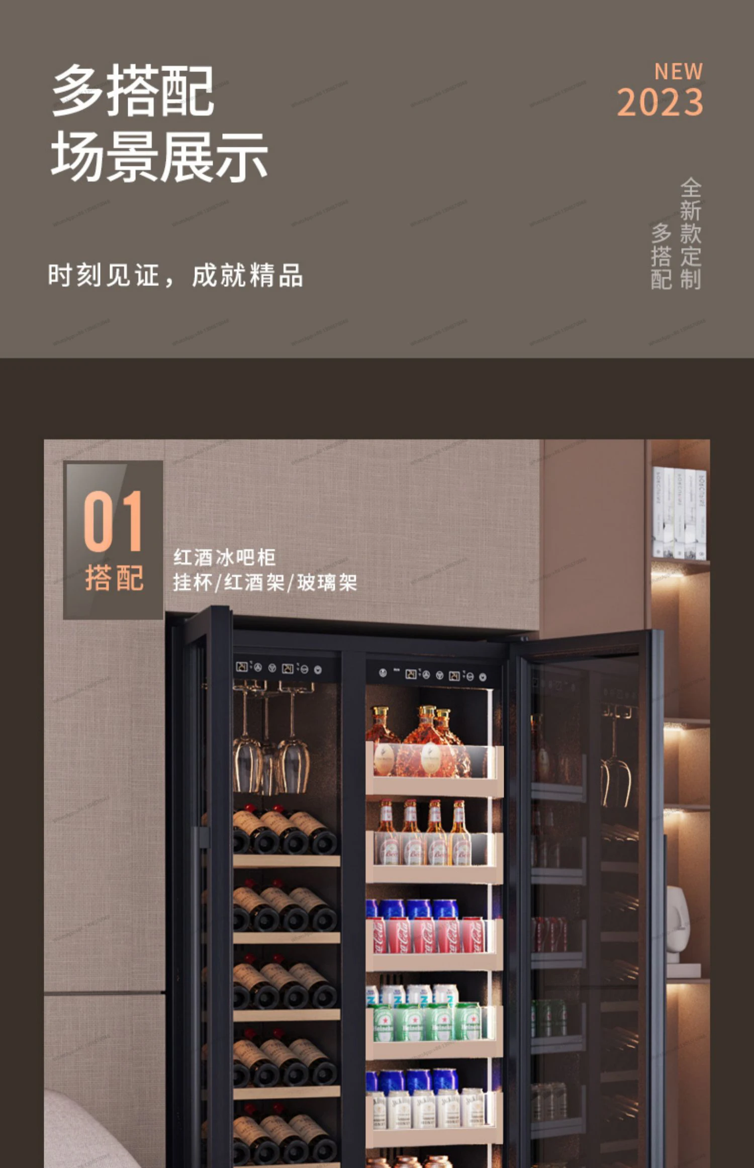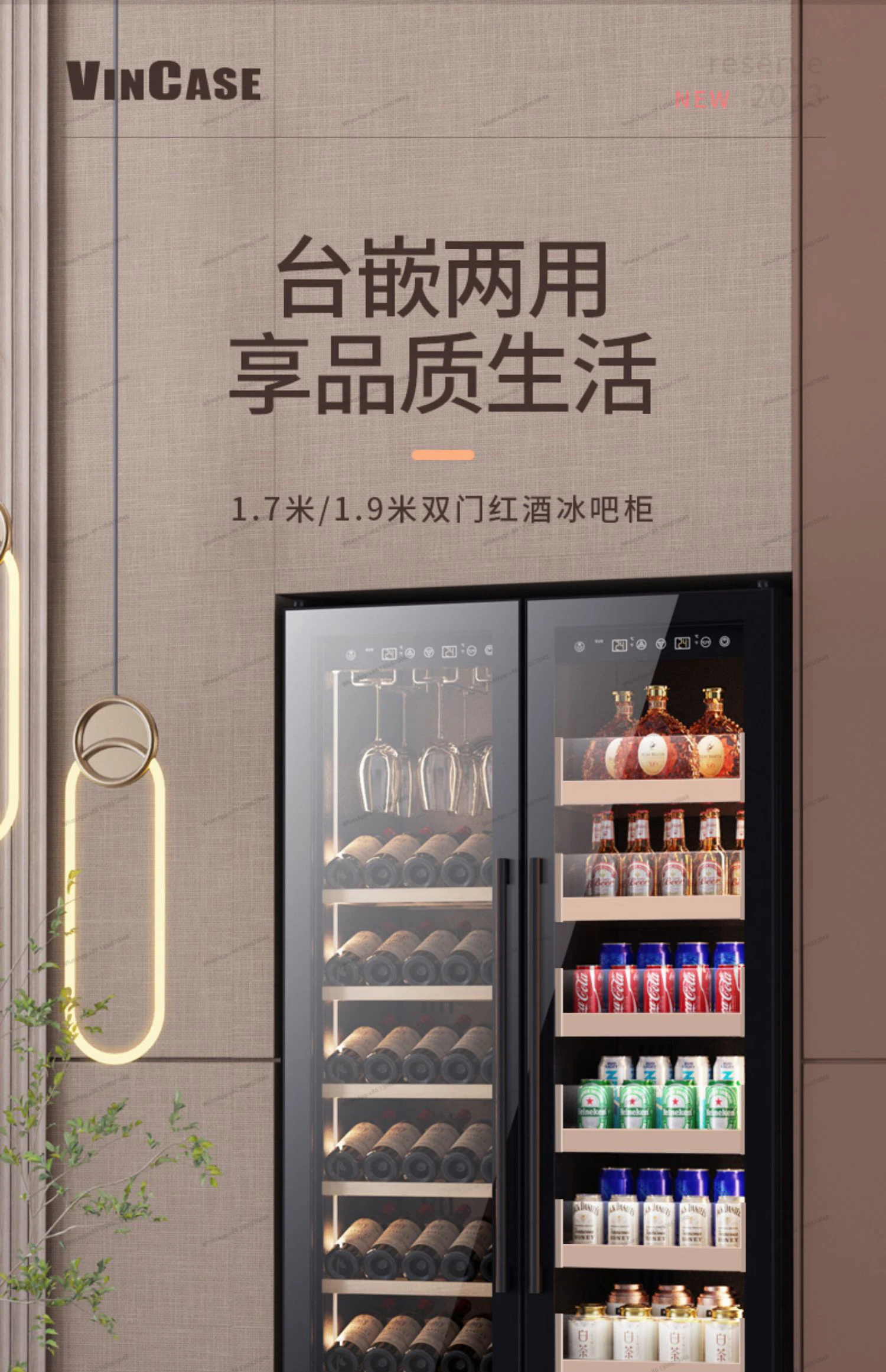 Ultra thin double door red wine cabinet, constant temperature wine cabinet, embedded ice bar, home living room, tea beverage ref