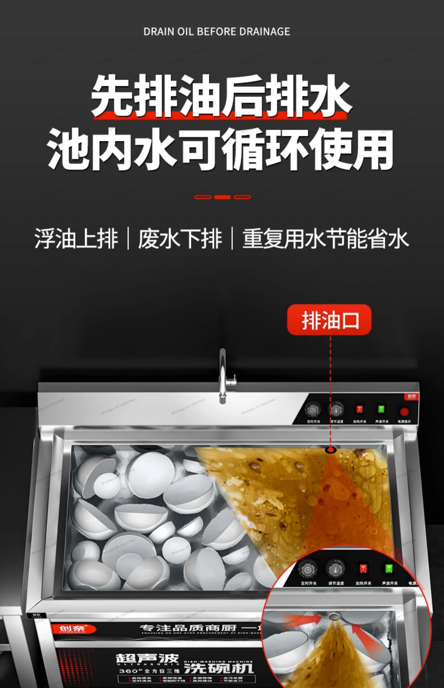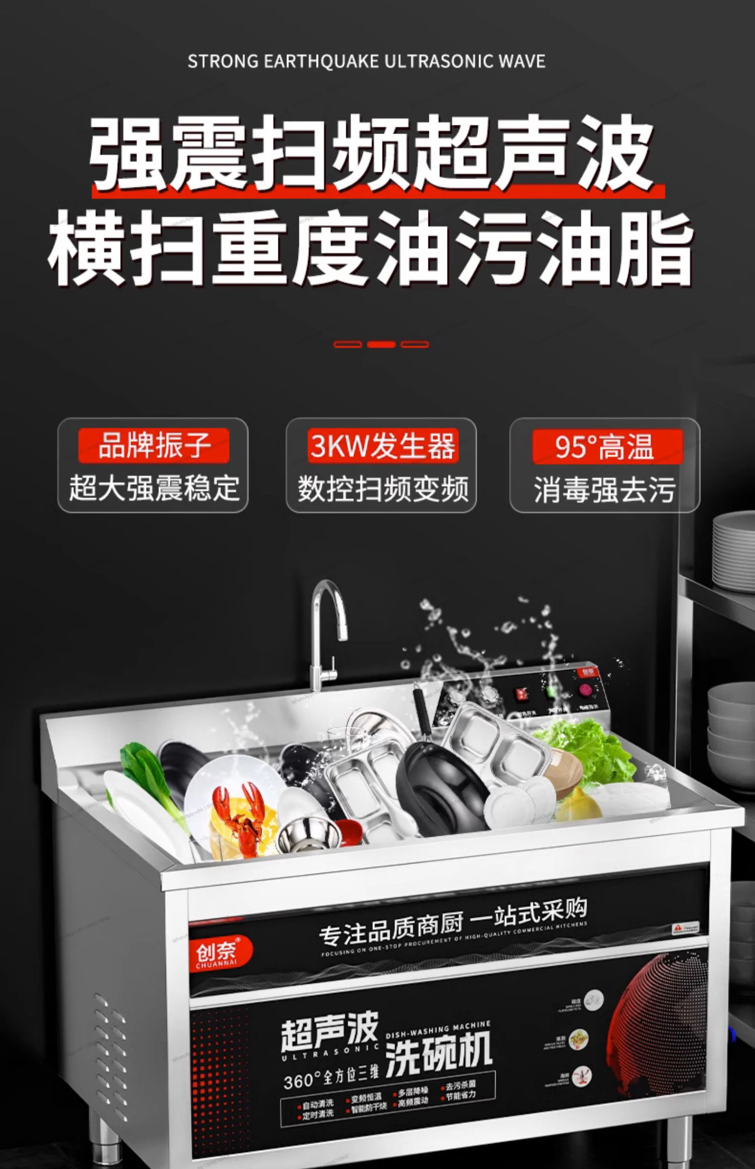 Ultrasonic dishwasher for commercial restaurants, canteens, restaurants, restaurants, fully automatic small household commercial