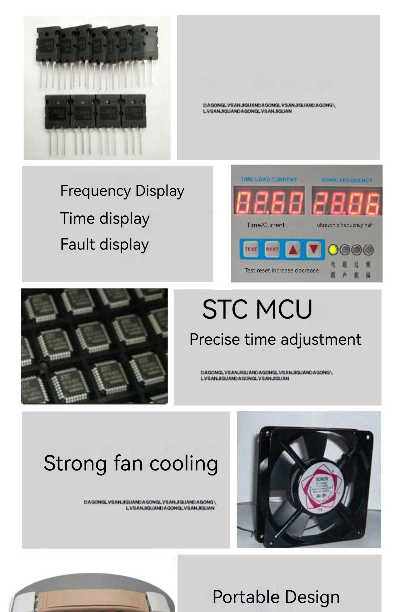 8. Current alarm, frequency deviation alarm, can detect whether the transducer welding head is damaged.