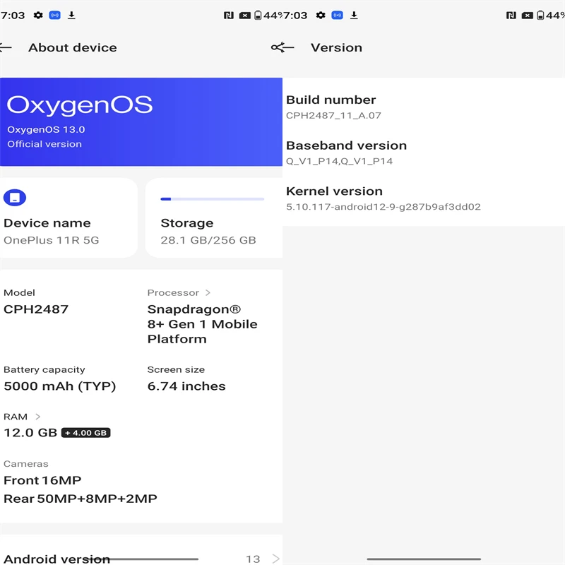 Battery: 5000mAh,100W SUPERVOOC Charge.