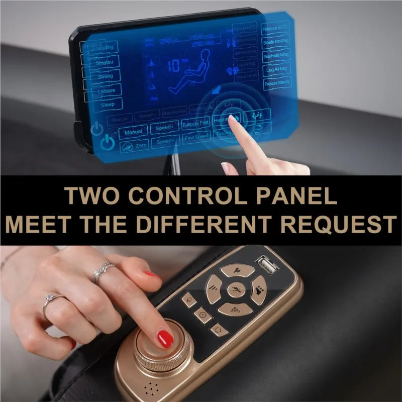 US Stock Full Body Massage Chair With Zero Gravity Recliner With Two Control Panel: Smart Large Screen & Rotary Switch