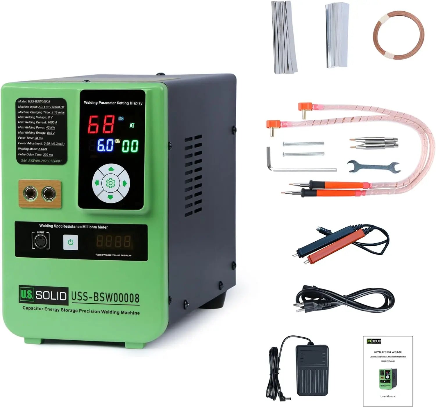 USS-BSW08 Battery Spot Welder KW apacitor Energy Storage Pulse Welding Machine Portable High Power Spot Welding Equipment