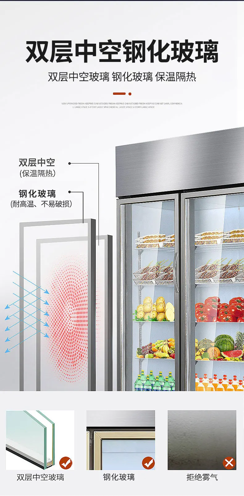 Vertical Freezer Commercial Restaurant Fruit Full Refrigeration and Preservation Cabinet Glass Door Refrigerator Four Door Six D