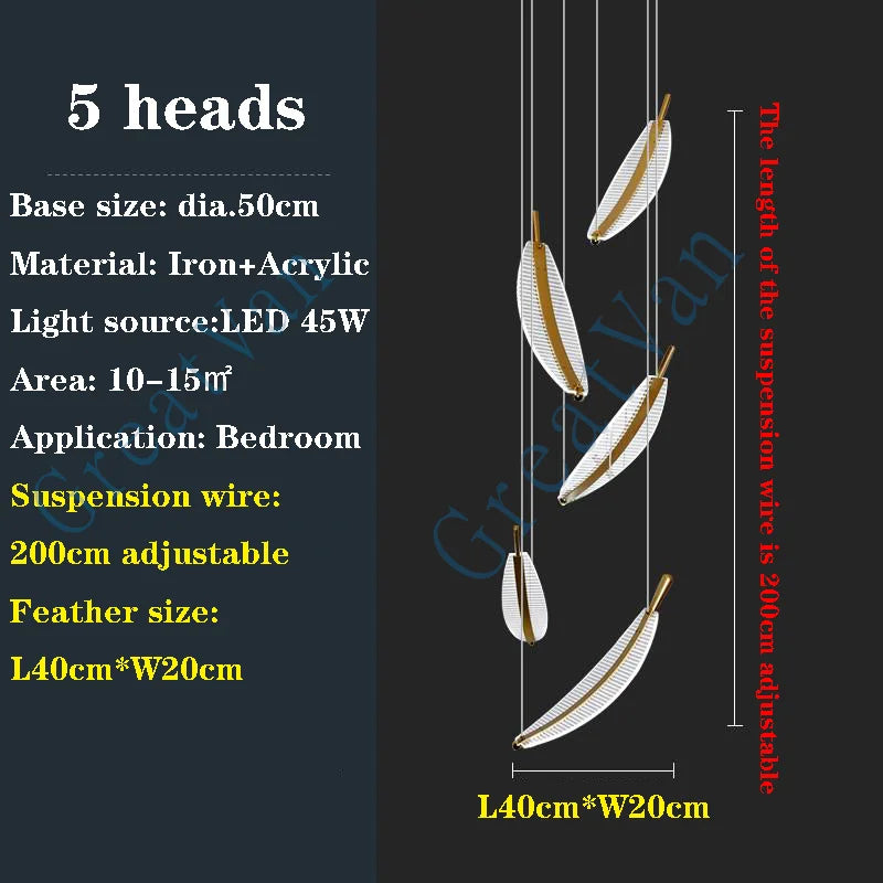 5 heads; Chassis diameter 50cm; The suspension wire is 200cm adjustable.