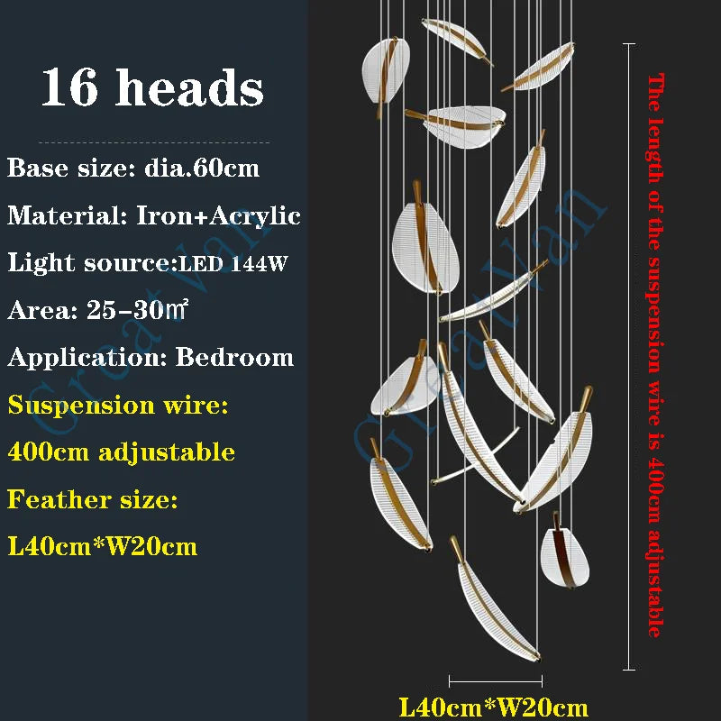 16 heads; Chassis diameter 60cm; The suspension wire is 400cm adjustable.