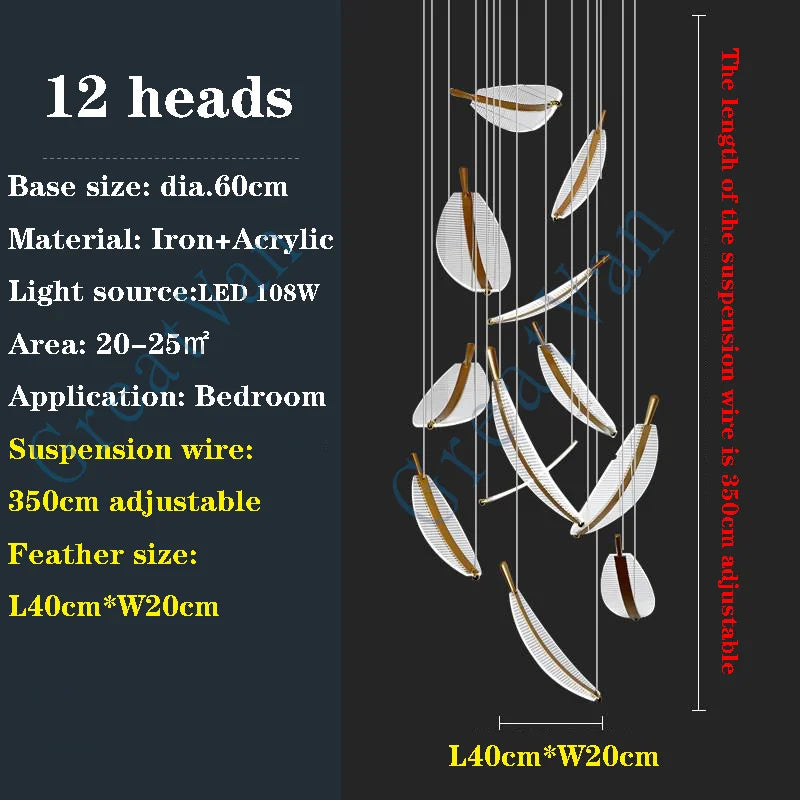 12 heads; Chassis diameter 60cm; The suspension wire is 350cm adjustable.