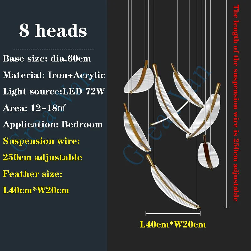 8 heads; Chassis diameter 60cm; The suspension wire is 250cm adjustable.