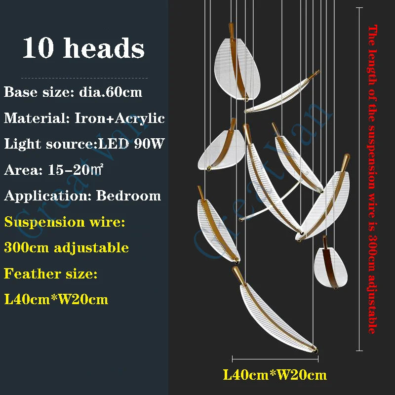 10 heads; Chassis diameter 60cm; The suspension wire is 300cm adjustable.