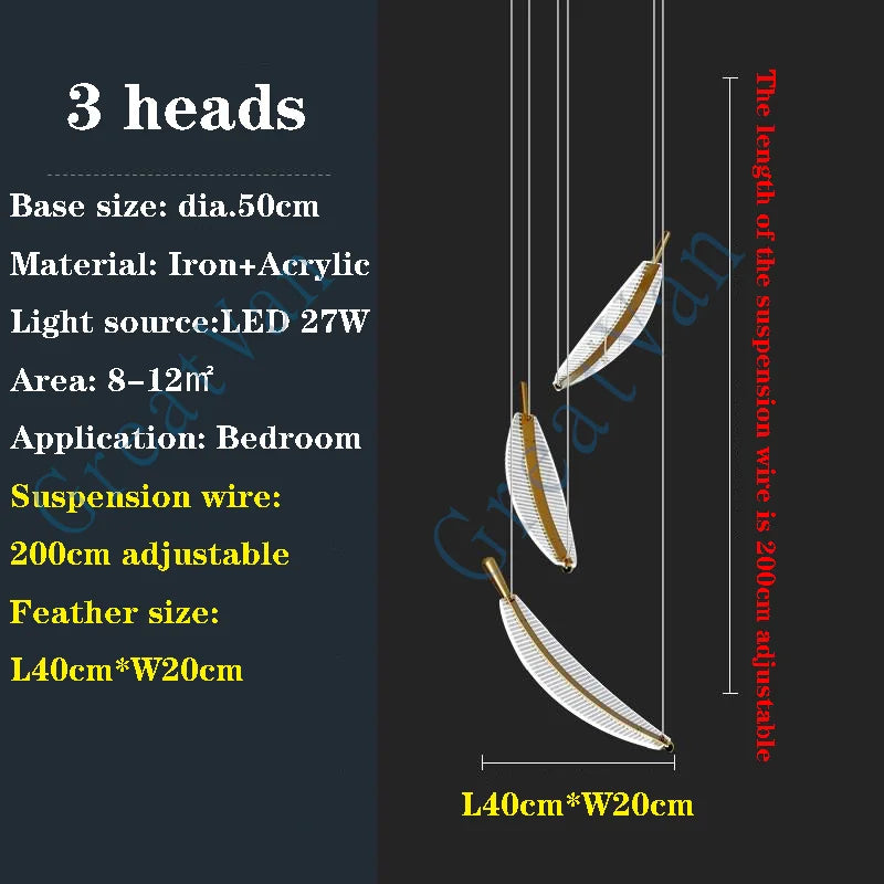 3 heads; Chassis diameter 50cm; The suspension wire is 200cm adjustable.