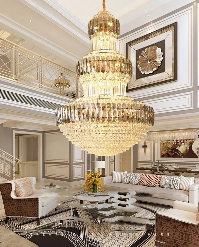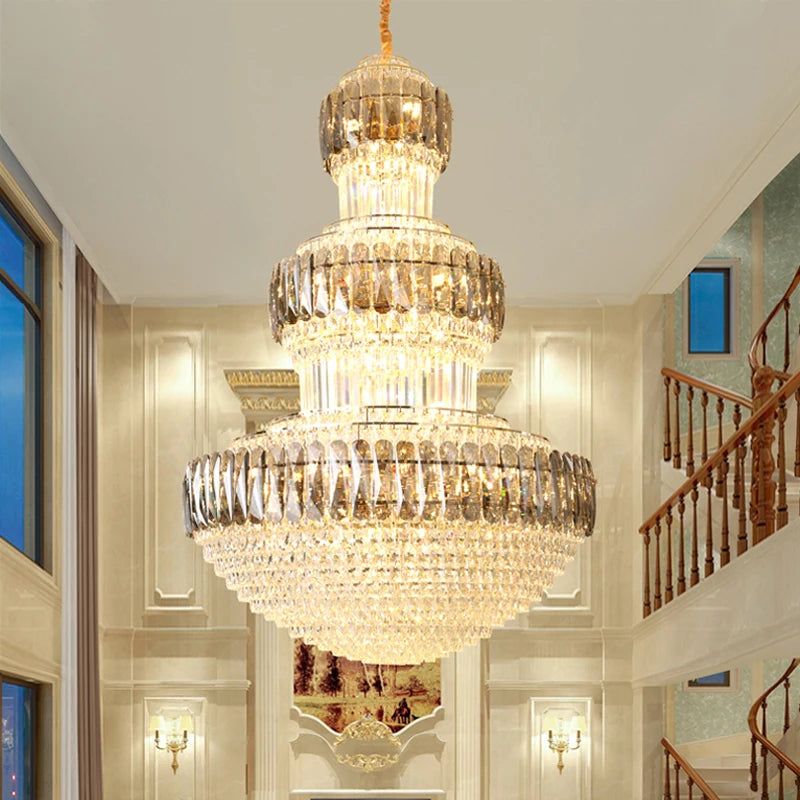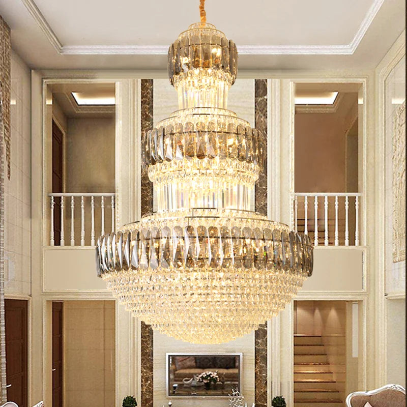 Villa hollow chandelier Hotel lobby light luxury lamps Post modern living room Duplex building Hall Rotating stair lamp