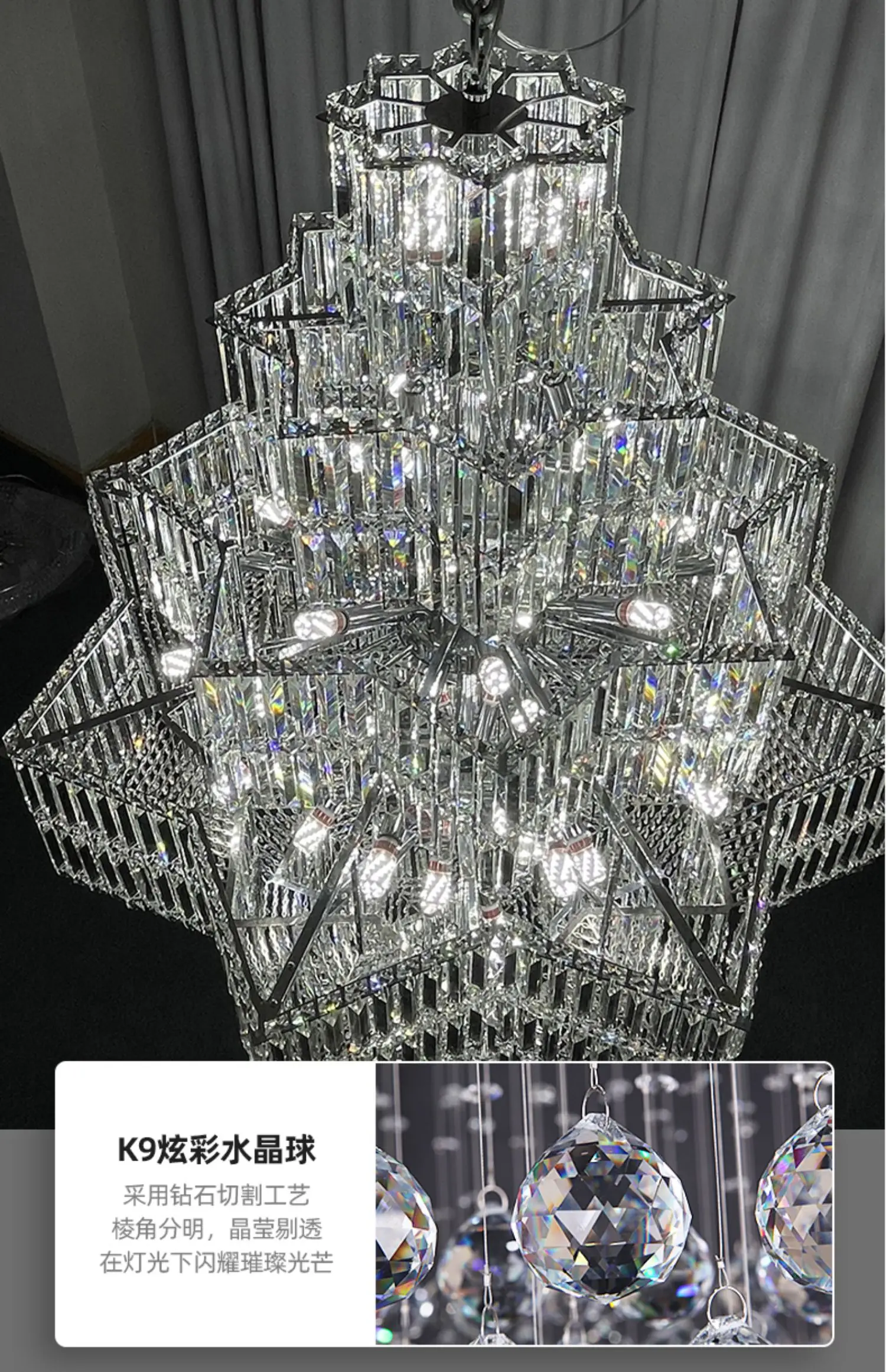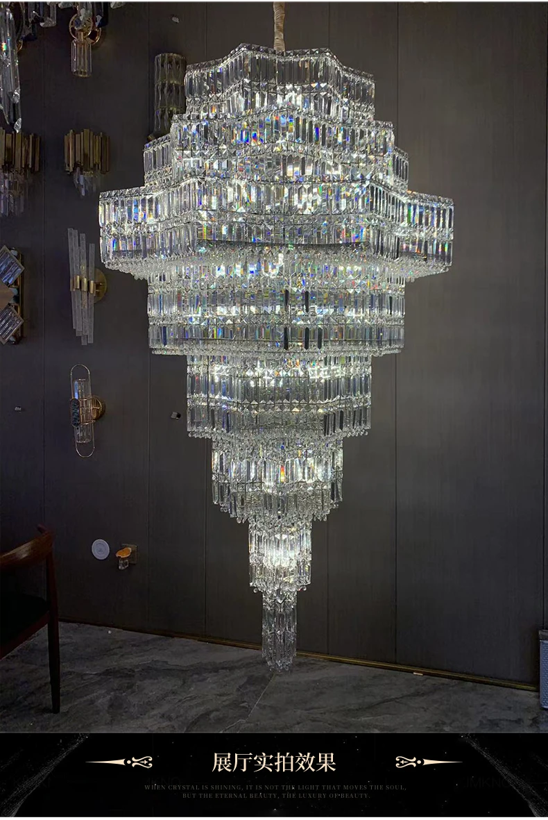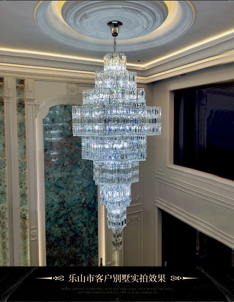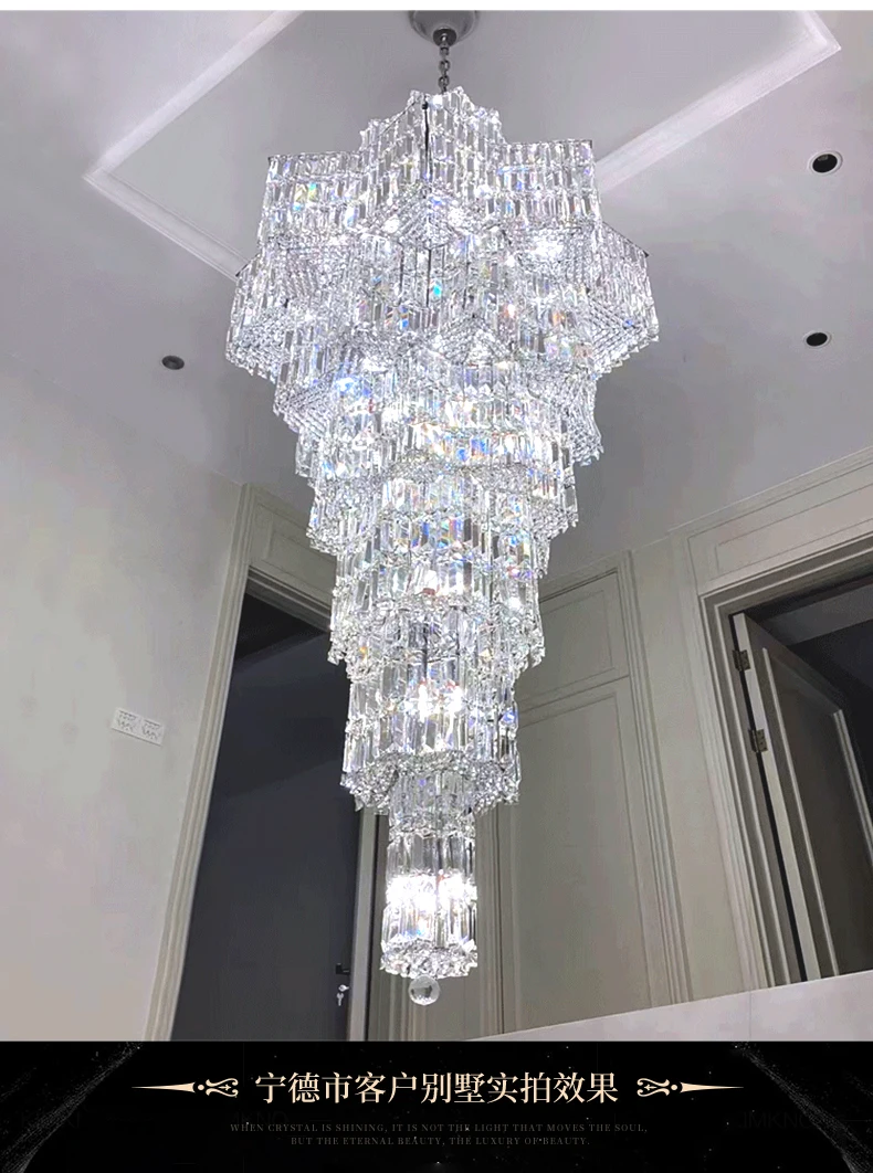 Villa hollow crystal chandelier Rotating staircase Luxury crystal lamp Hotel high-end duplex building crystal chandelier