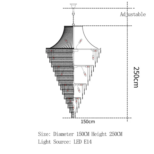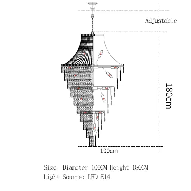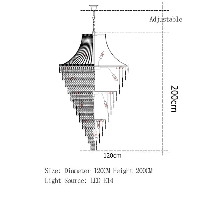 Villa hollow duplex building chandelier crystal hall spiral staircase post-modern living room hotel lobby light luxury lamp