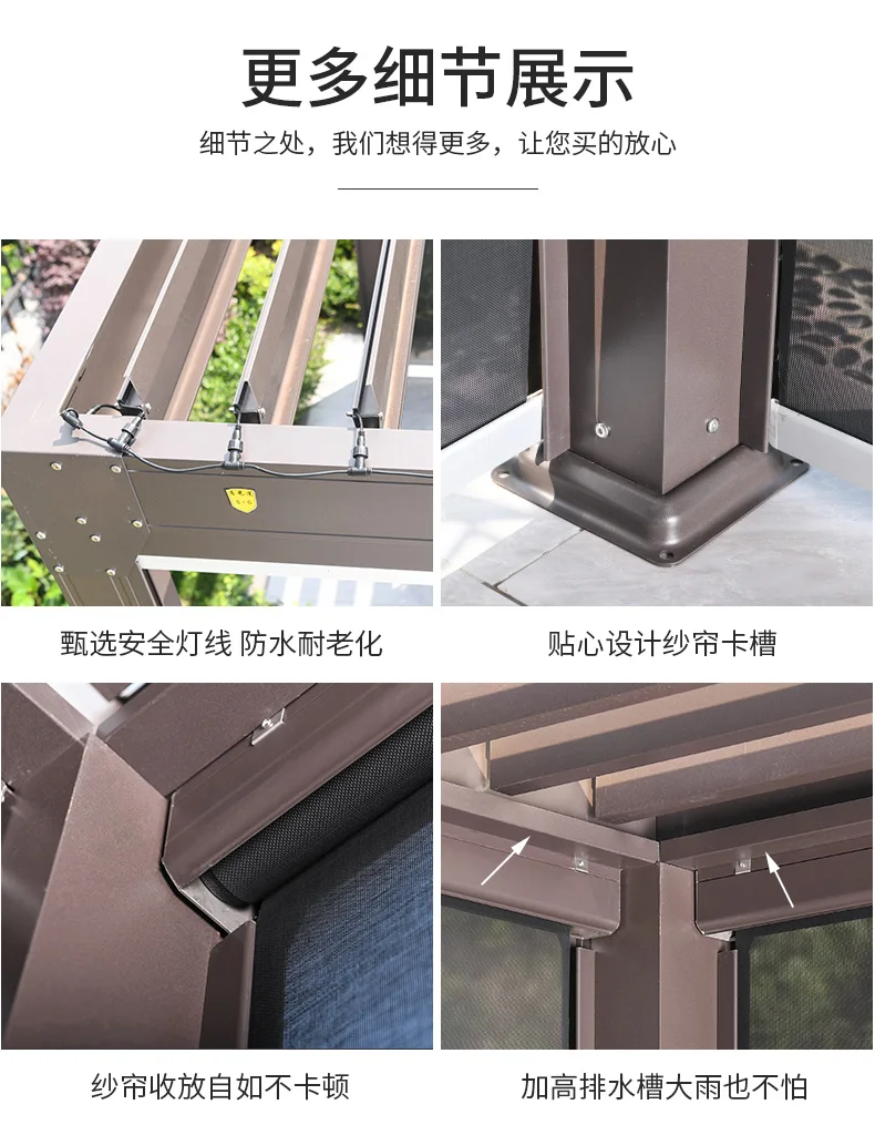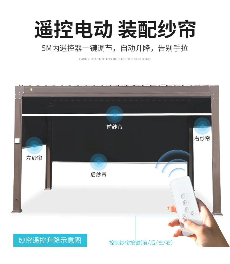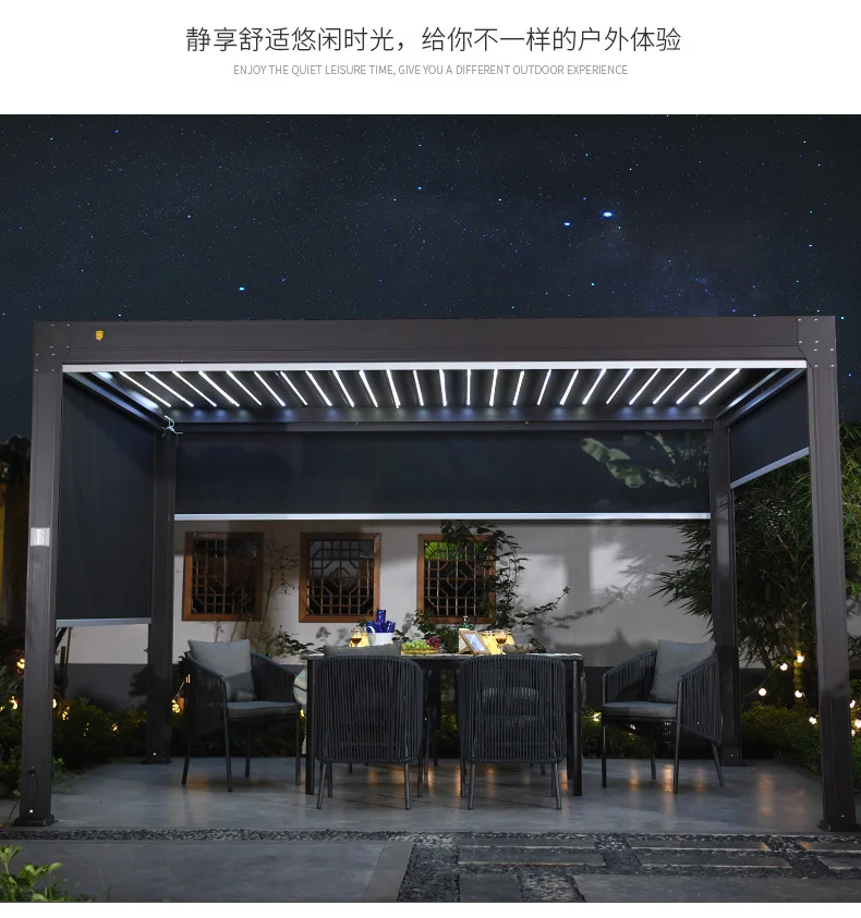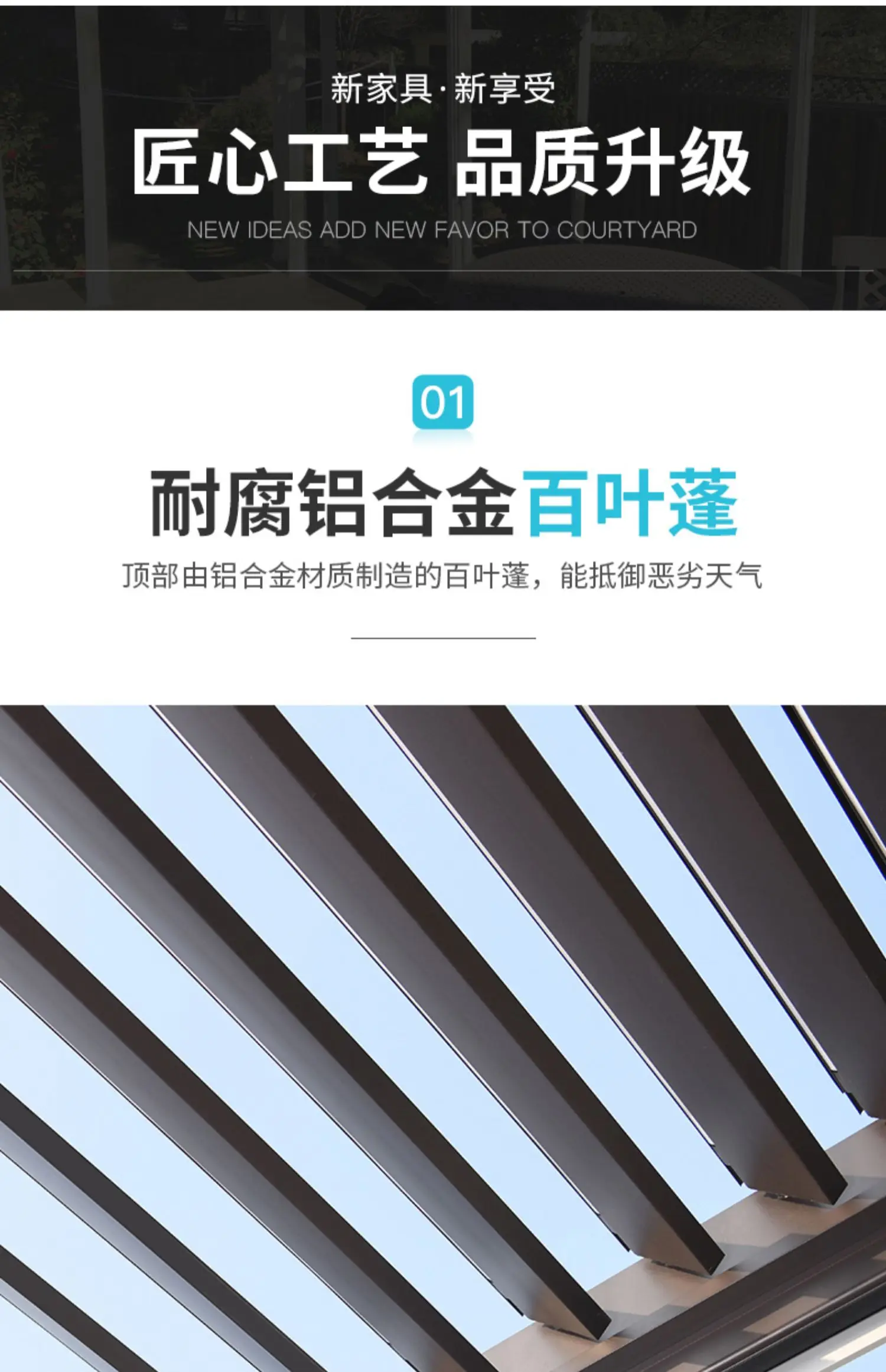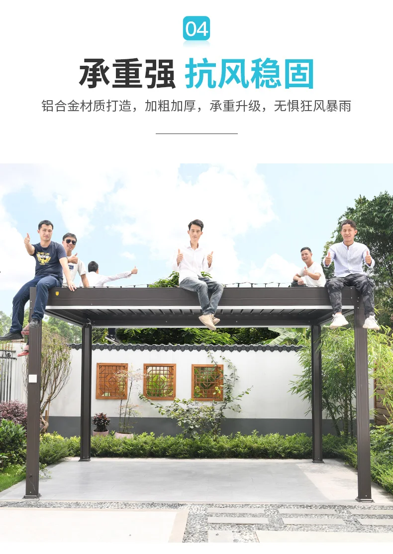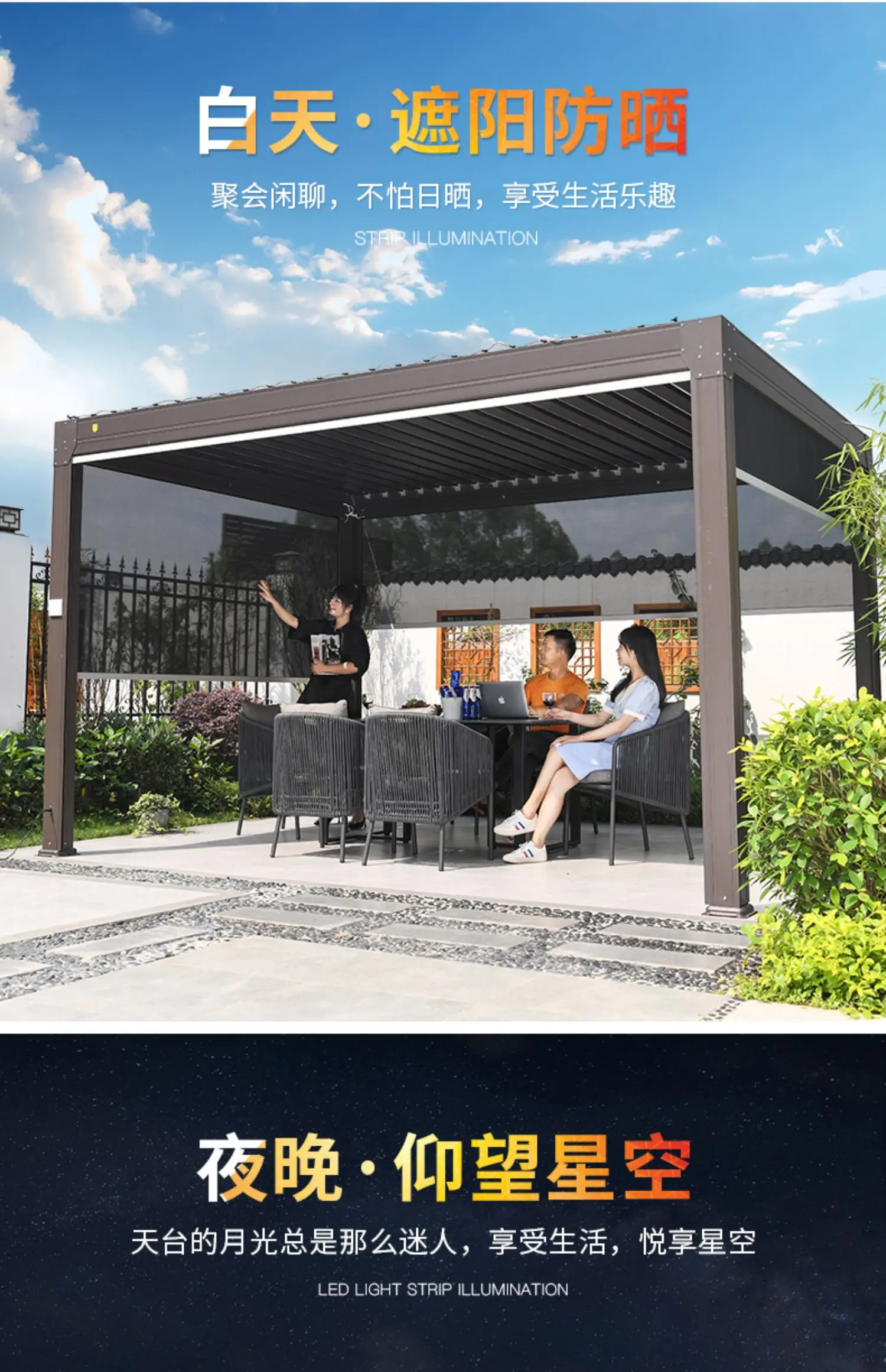 Villa outdoor sunshade, garden new Chinese style sunshade, sunny outdoor aluminum alloy pavilion
