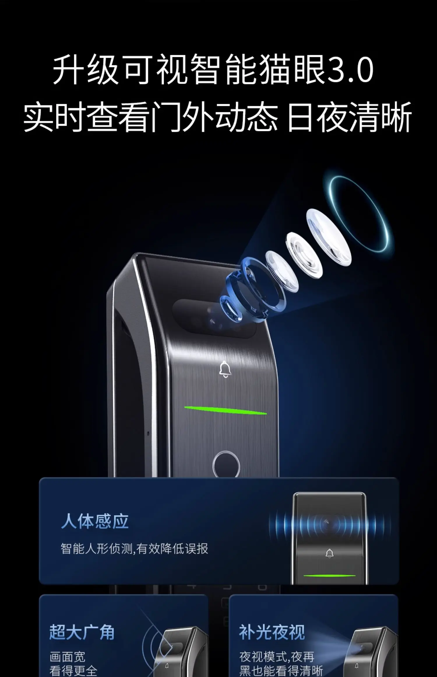 Visual cat's eye monitoring fingerprint lock D7P anti-theft door intelligent lock password lock intelligent door lock