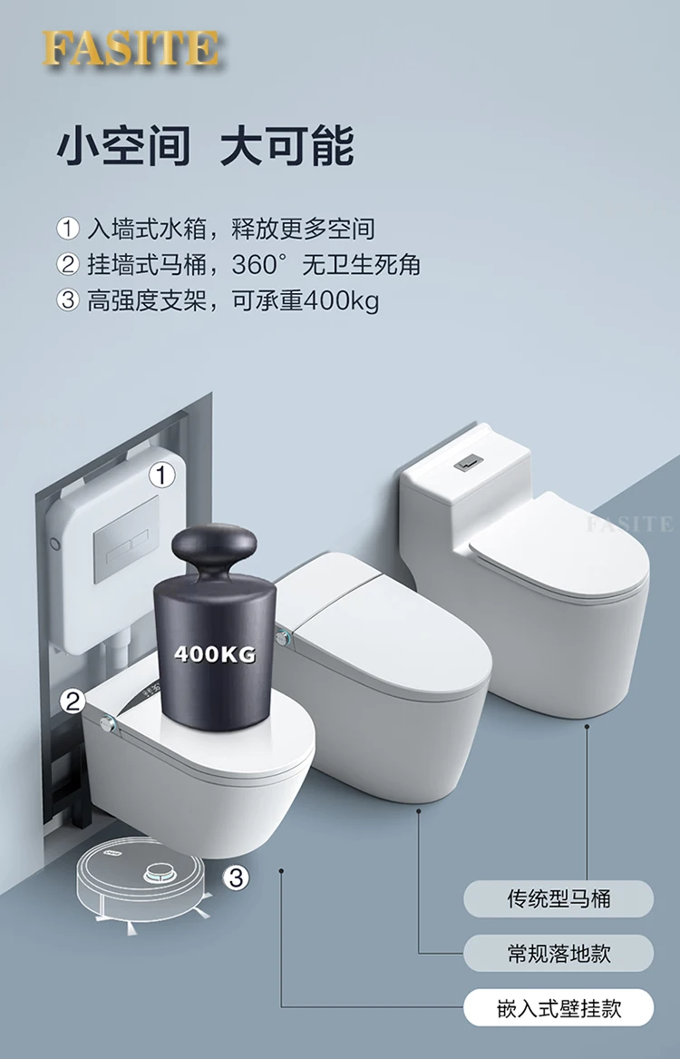 Wall mounted intelligent wall mounted water tank bracket, suspended wall mounted hotel household integrated toilet