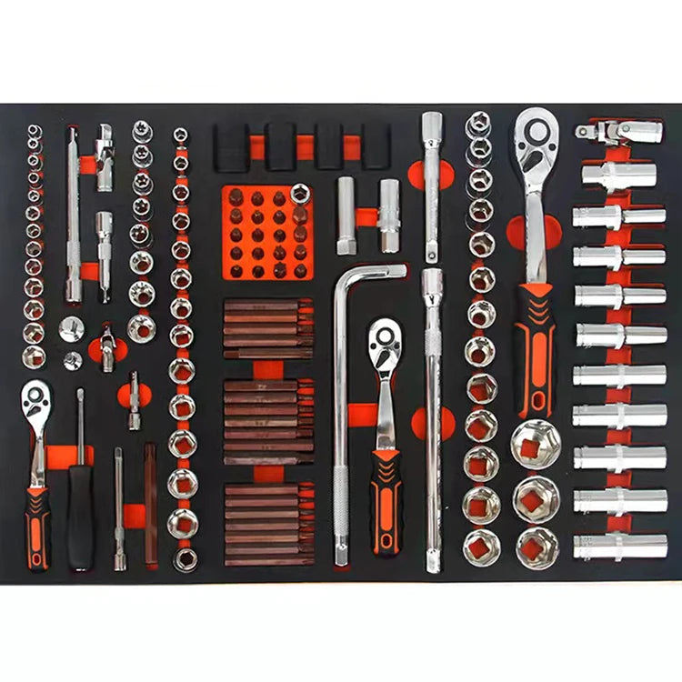 175 Clamp spring clamp inside straight *1 175 Clamp spring clamp outside straight *1 8in tower pincers*1 slip joint pliers *1 long nose pliers*1 wire-cutter *1 10in adjustable spanner*1 s2 Allen *9 3*75 screwdriver phil-slot*1 Cross*1 6*150 screwdriver phil-slot*1 Cross*1 Spline screwdriver T20*100 *1 T30*100 *1 plum split wrench 8-10-12-13-14-15-16-17-18-19-21mm *11 Pipe wrench8*10*1 9*11*1 10*12*1 13*14*1 Flat three jaw *1 Valve core wrench*1 AR-TS*1 filler gauge17pc*1 hammer300g*1 Pointer to the torque0-300n*1 1/2Short hexagon sleeve8-10-12-13-14-15-16-17-18-19-21-22-23-24-27-30-32mm 1/2long hexagon sleeve10-12-13-14-16-17-18-19-21mm 3/8Short hexagon sleeve8-9-10-11-12-13-14-15-16-17-18-19mm 1/4Short hexagon sleeve4-4.5-5-5.5-6-7-8-9-10-11-12-13-14mm 1/2 short pneumatic sleeve17-19-21mm Ratchet wrench with horn teeth1/4 3/8 1/2 3/8 Spark plug sleeve14-16-21mm Spark plug sleeve1/4-3/8-1/2 5-10in1/2extension bar 3/8extension bar 6in 1/4extension bar 2-4in 1/2Curved rod 10in 1/4Small square bar 1/4bit holder 1/2bit holder 10mm 3/8bit holder 10mm Turn head1/2*3/8*1/4 10mm*100mm bits s2 T52 10MM*30MM bits S2 M5-6-8-10-12;H4-5-6-7-8-10-12;T20-25-30-40-45-50-55 10MM*75MM bits S2 M5-6-8-10-12;H4-5-6-7-8-10-12;T20-25-30-40-45-50-55 1/4*6.3MM BITS 25MM Long S2 9PCS