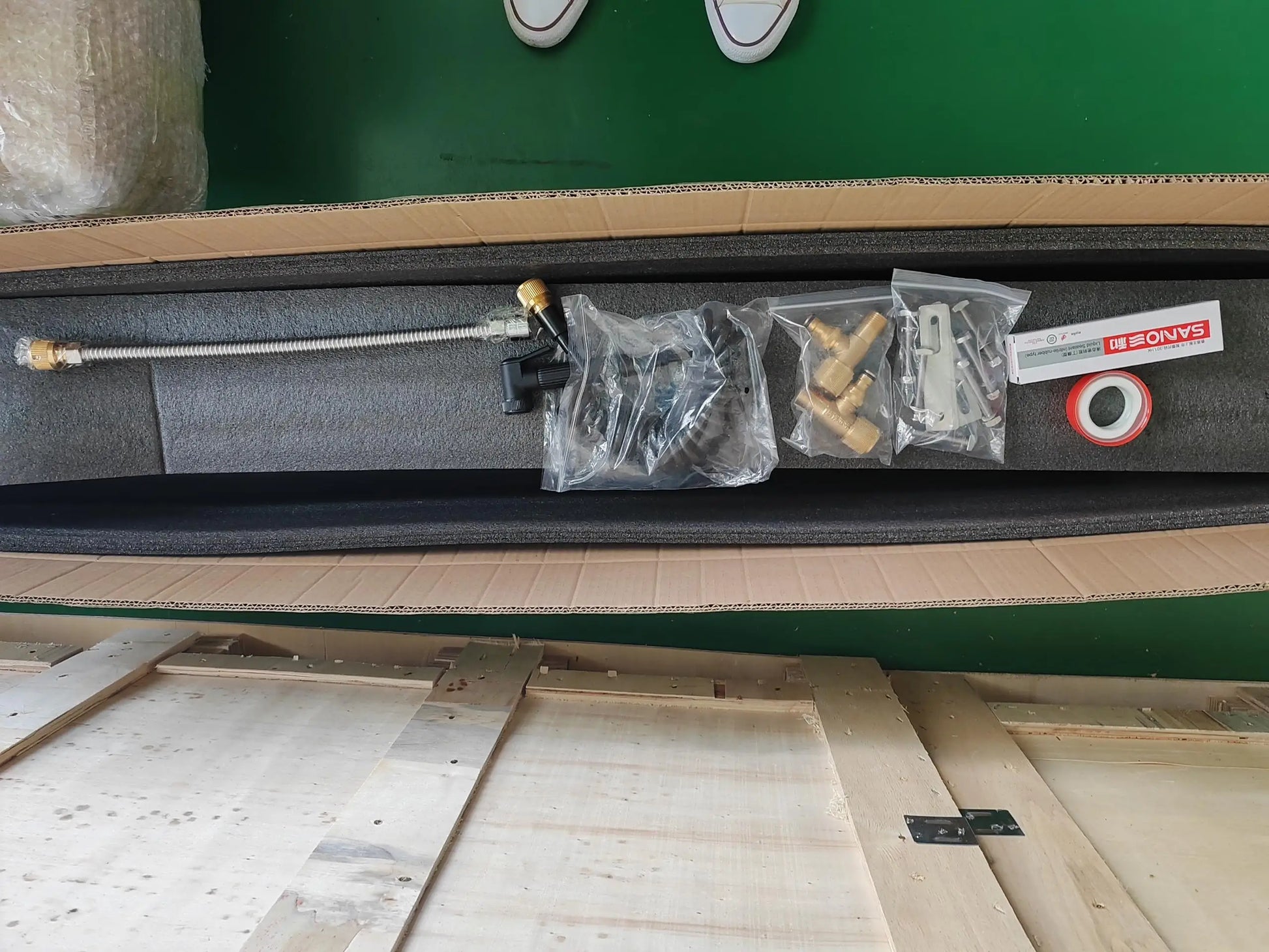 5.Accessories : telescopic pipe with shower head x1pc; Angle valve x2pcs; pipe x1pc; installation parts x3pcs