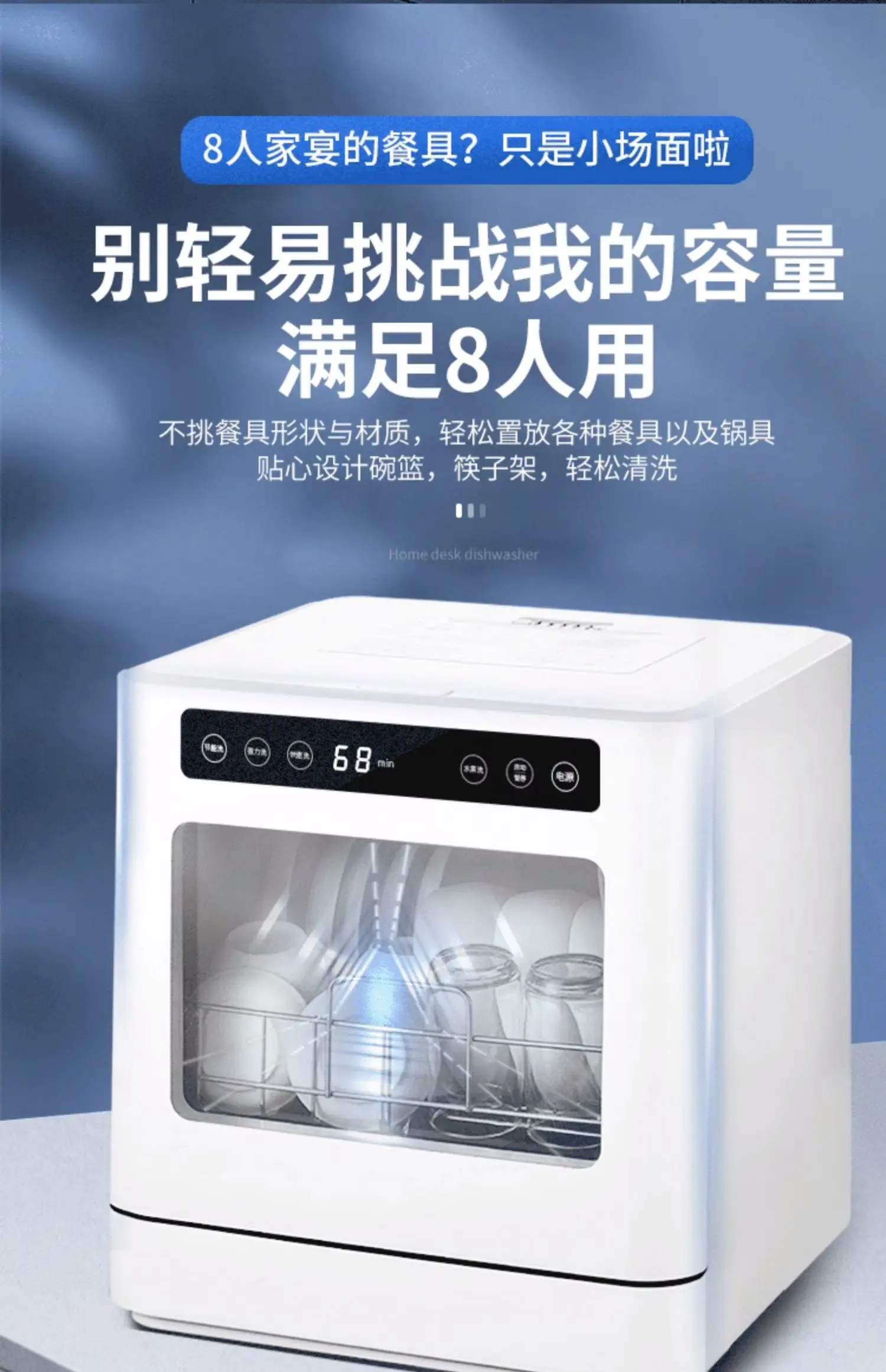 wine8-person desktop dishwasher for household use, fully automatic, large capacity UV sterilization, drying, up and down sprayin