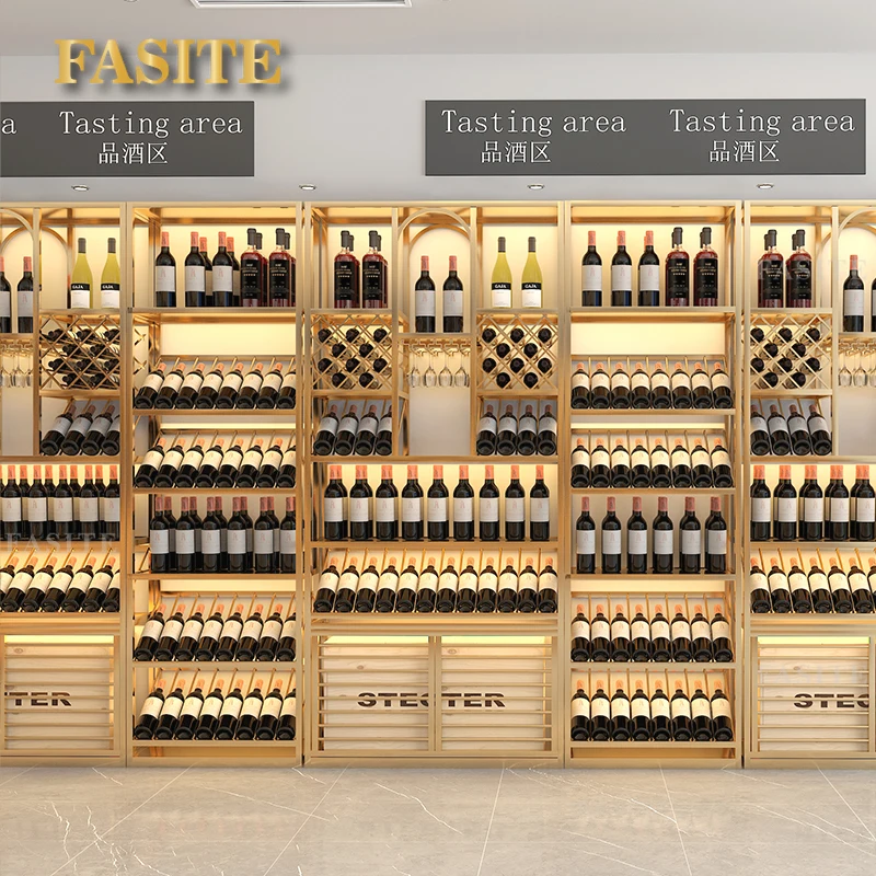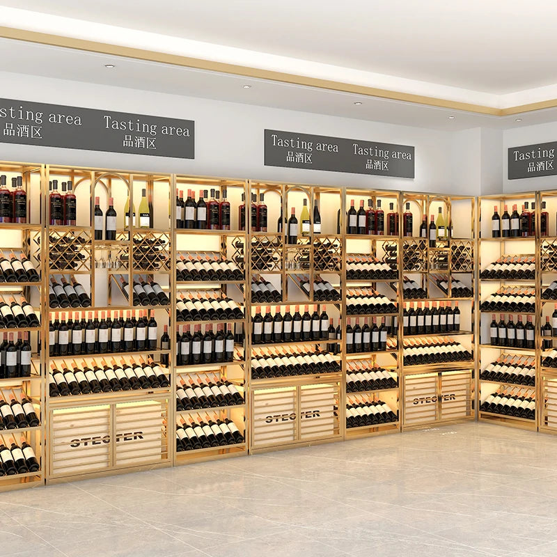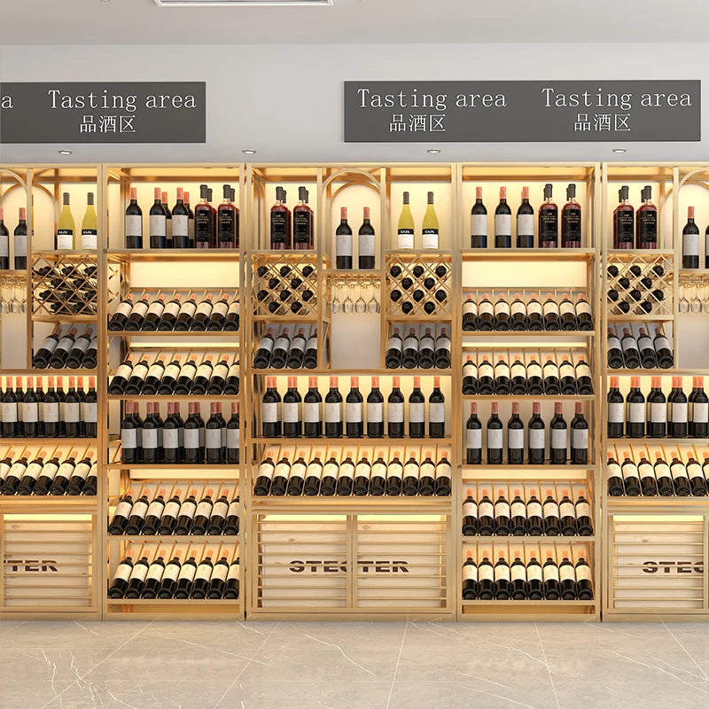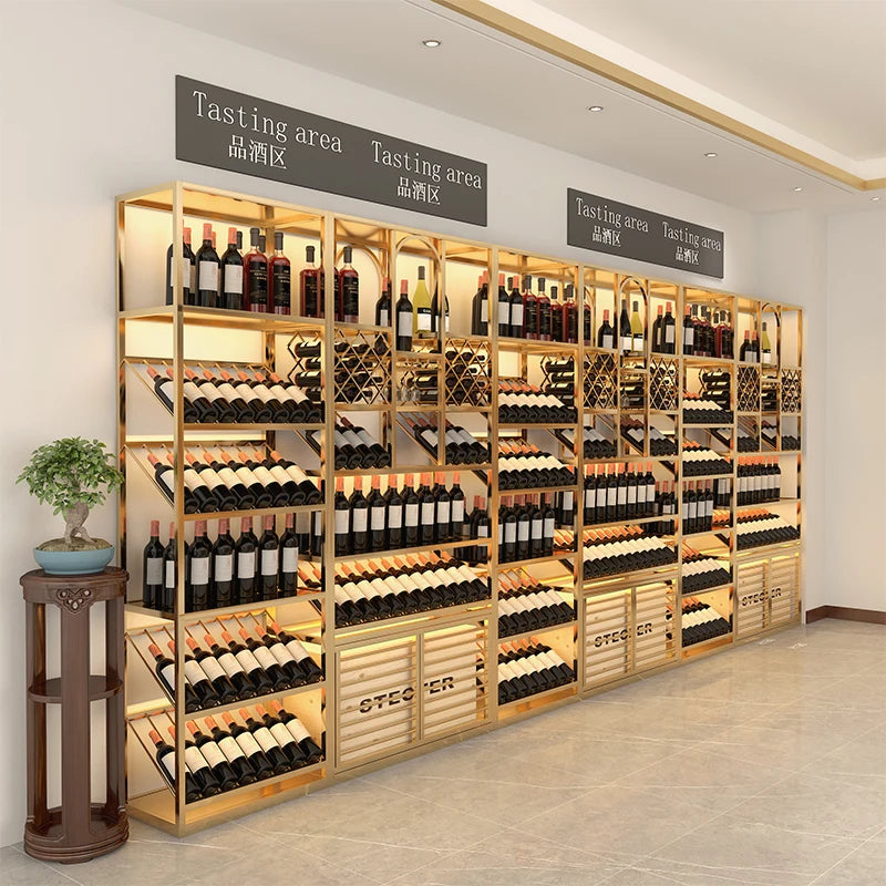 Winery luxury floor type foreign wine red wine shelf bar iron Baijiu against the wall wine