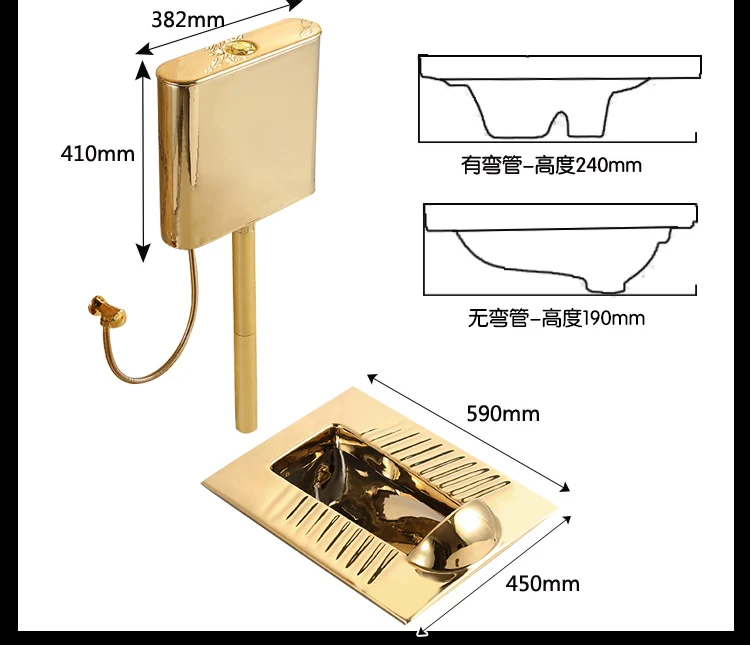 With baffle head golden squat toilet flush tank set ceramic European toilet anti-blocking anti-odor concealed squat toilet squat