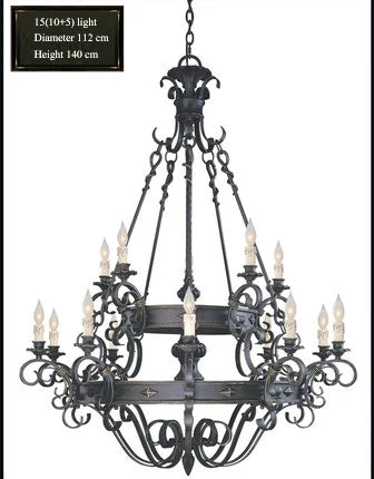 15 (10+5) light : Diameter 112 CM , Height 140 CM , Chain 50 CM, height adjustable.