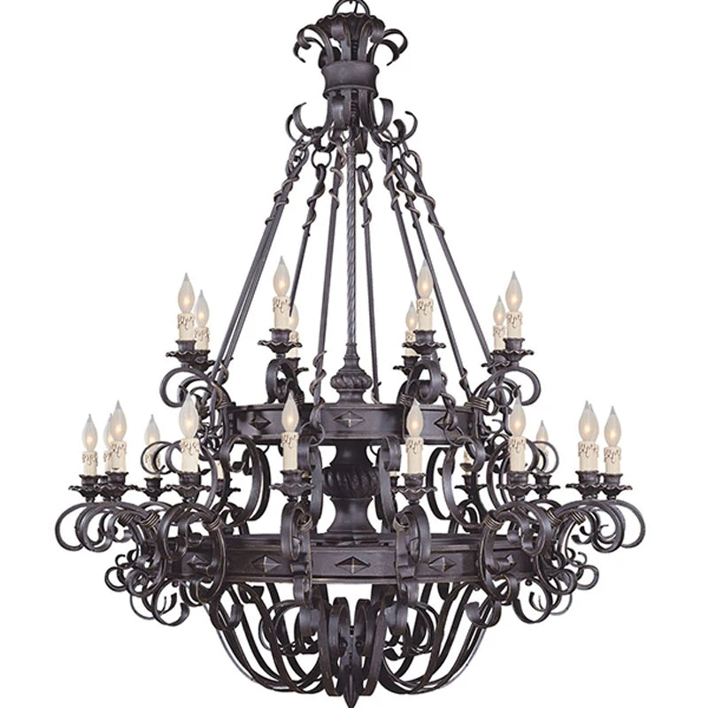 Wrought Iron Art Retro Candle Chandeliers Atmosphere Villa Staircase Household Noble Pendant Lamps Ceiling Hanging Lighting