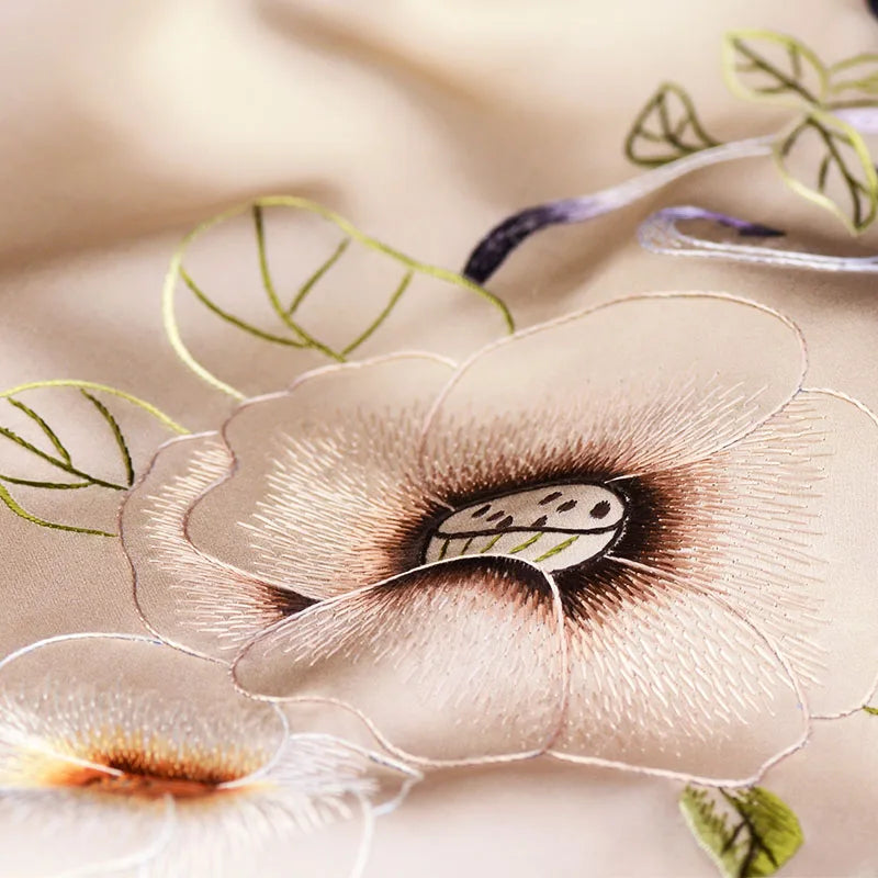 Xiuzhuang self sells 2023 new handmade embroidered silk scarf shawl "Suya Mountain Tea" Chinese style scarf