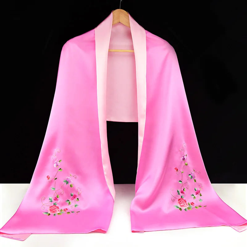 Xiuzhuang Self sold New 2023 Mid length Summer Versatile Silk Vintage Ethnic Style Suzhou Embroidered Women's Shawl Scarf