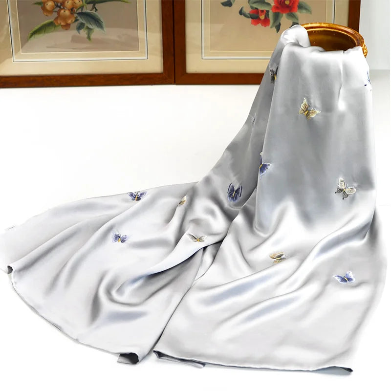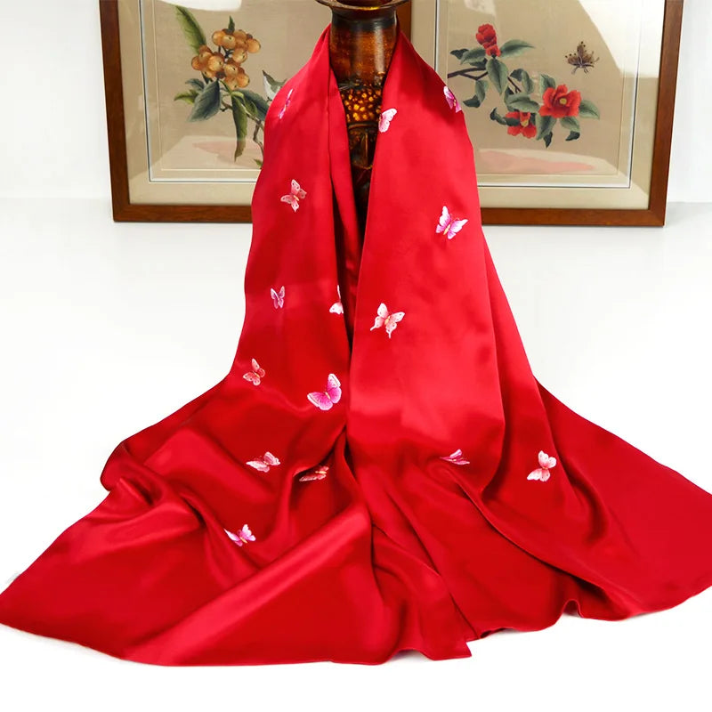 Xiuzhuang's self sold new 2023 silk cheongsam draped with shawl, handcrafted Suzhou embroidery long bridal scarf and scarf