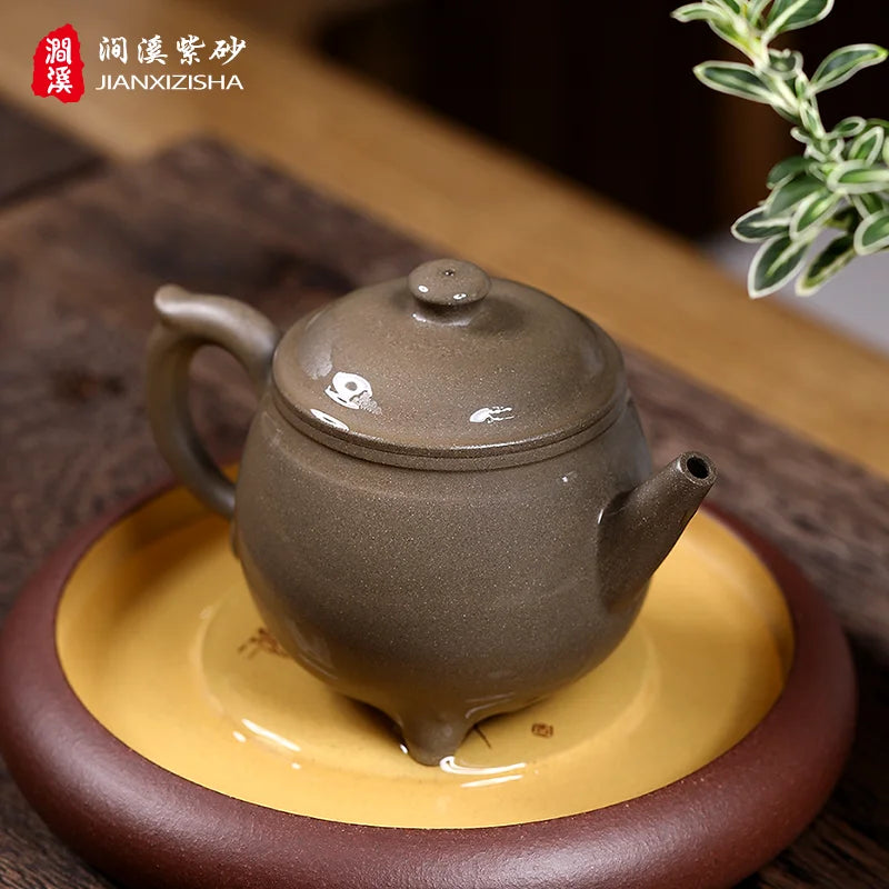 Xixi Yixing Teapot Teapot Famous Aid Wang Fengqin Three Feet Tripod Pot Raw Ore Sky Blue Mash Boutique Tea Set
