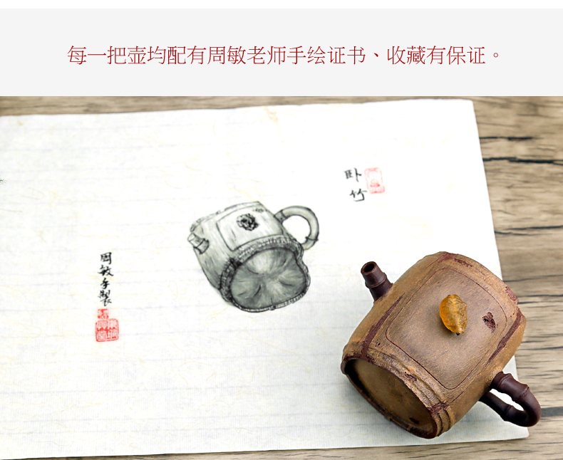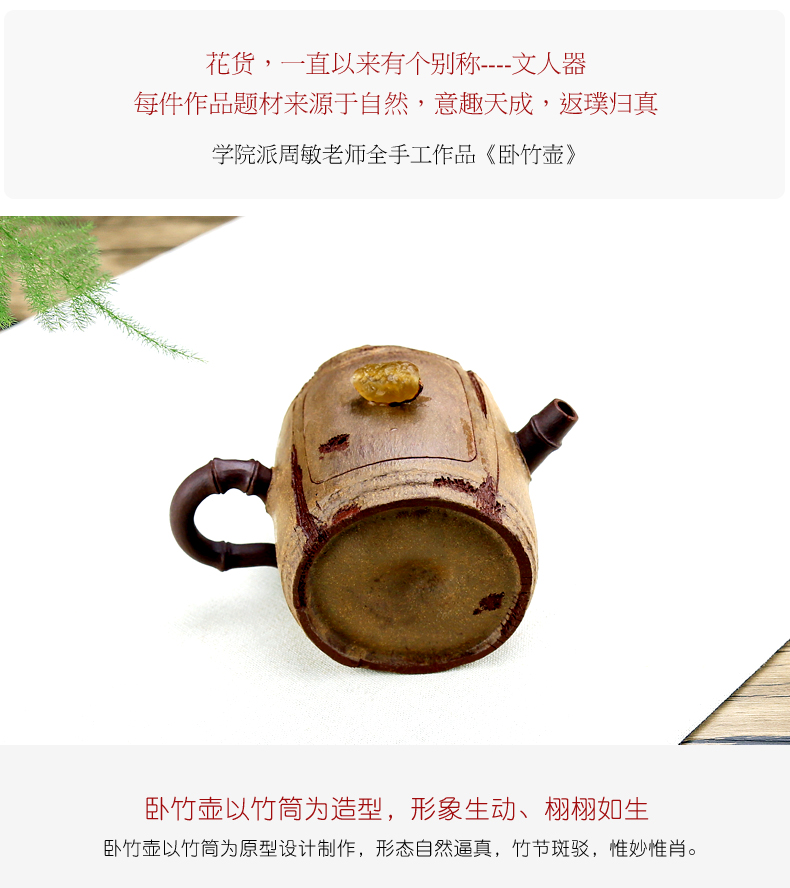 Xiyin Taofu Yixing Purple Clay Pot Handmade Famous Zhou Min Sleeping Bamboo Pot Literati Pot Flower Goods Bamboo Joint Bamboo Se