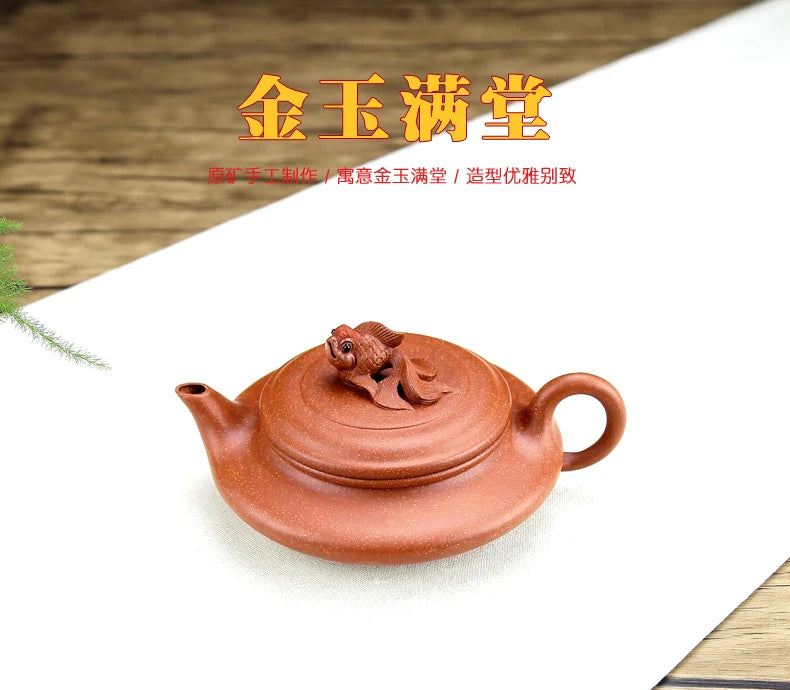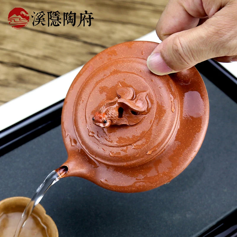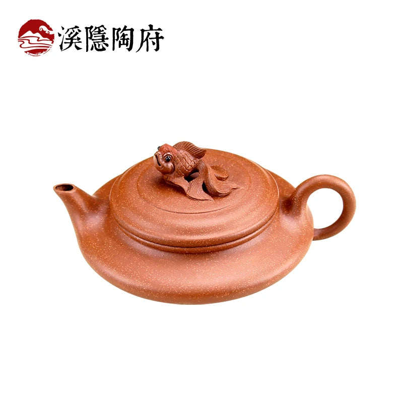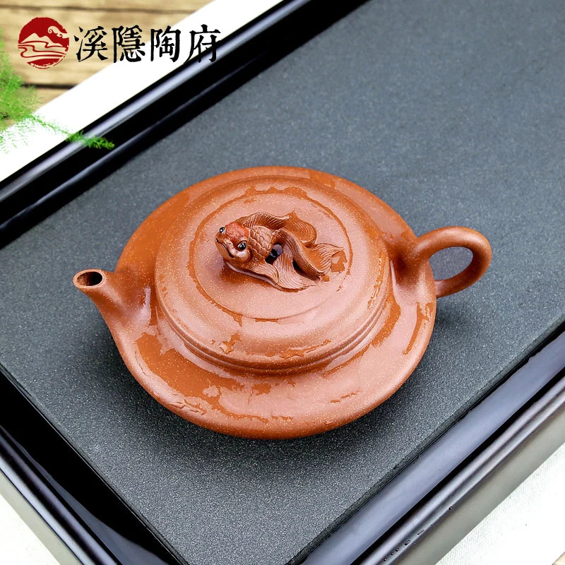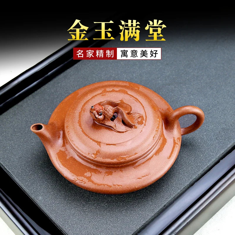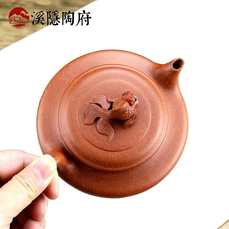 Xiyin Taofu Yixing Teapot Famous Handmade Golden Fish Pot Flat Oval Tea Pot Sketch Gongfu Teapot Tea Set