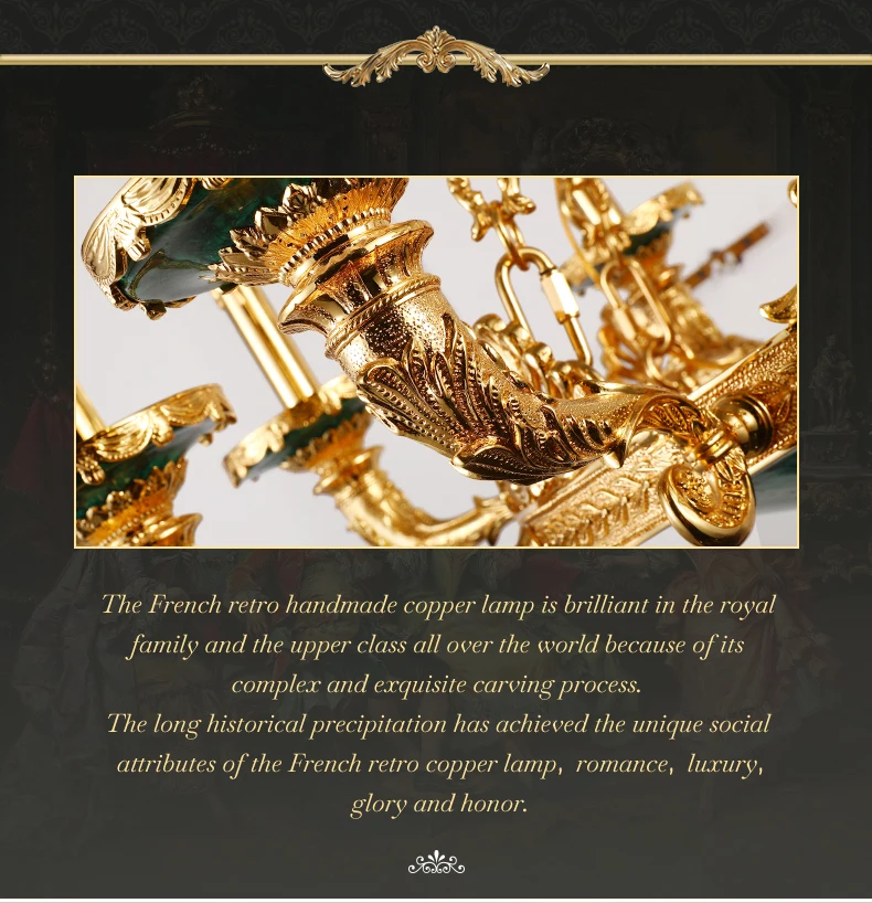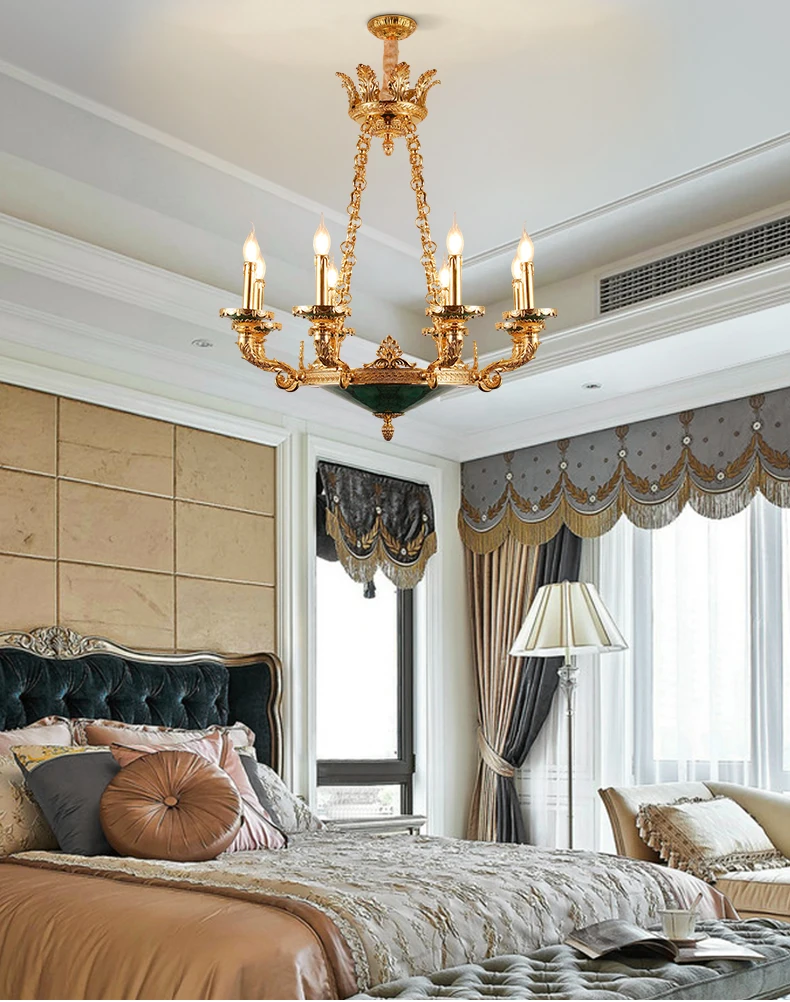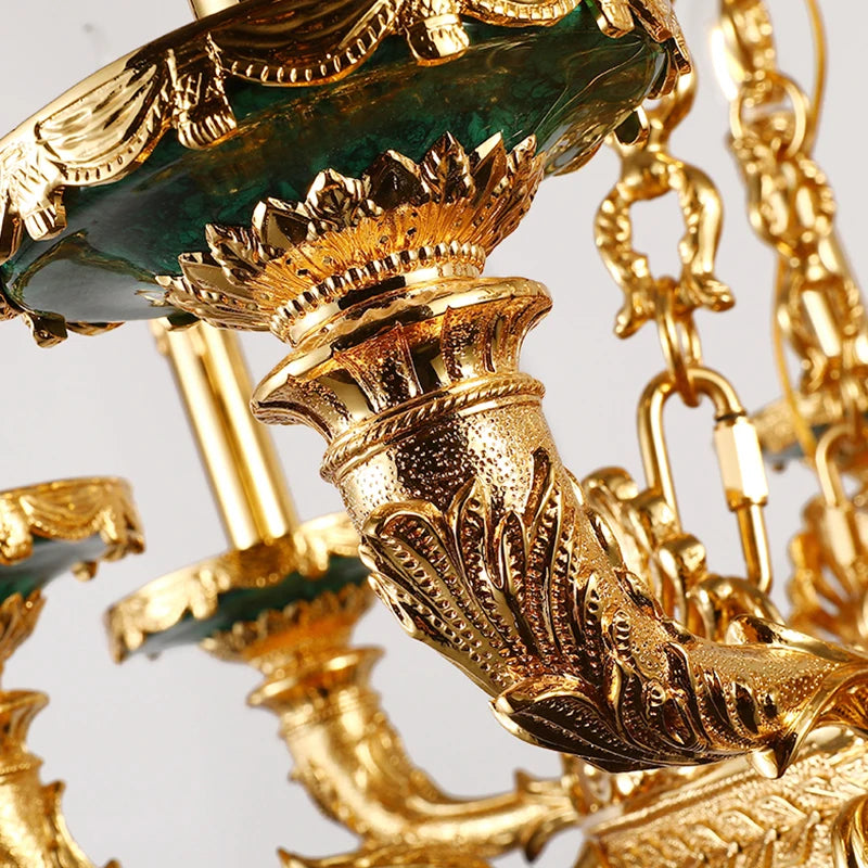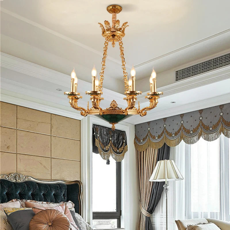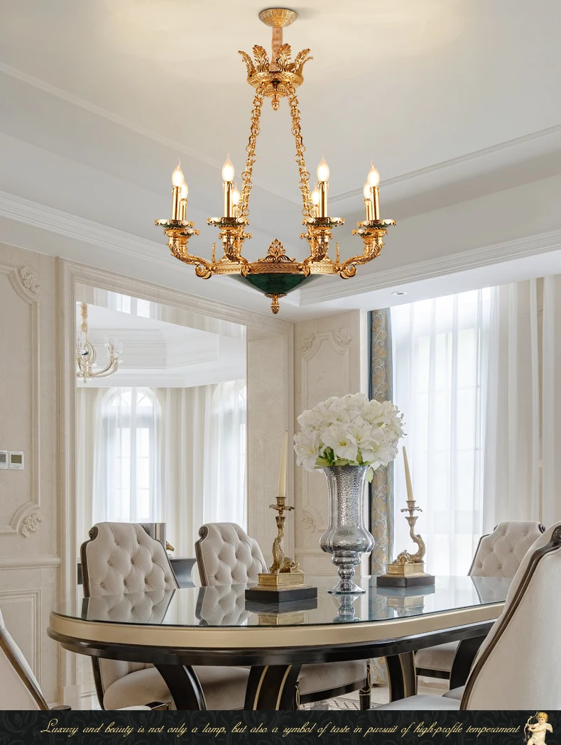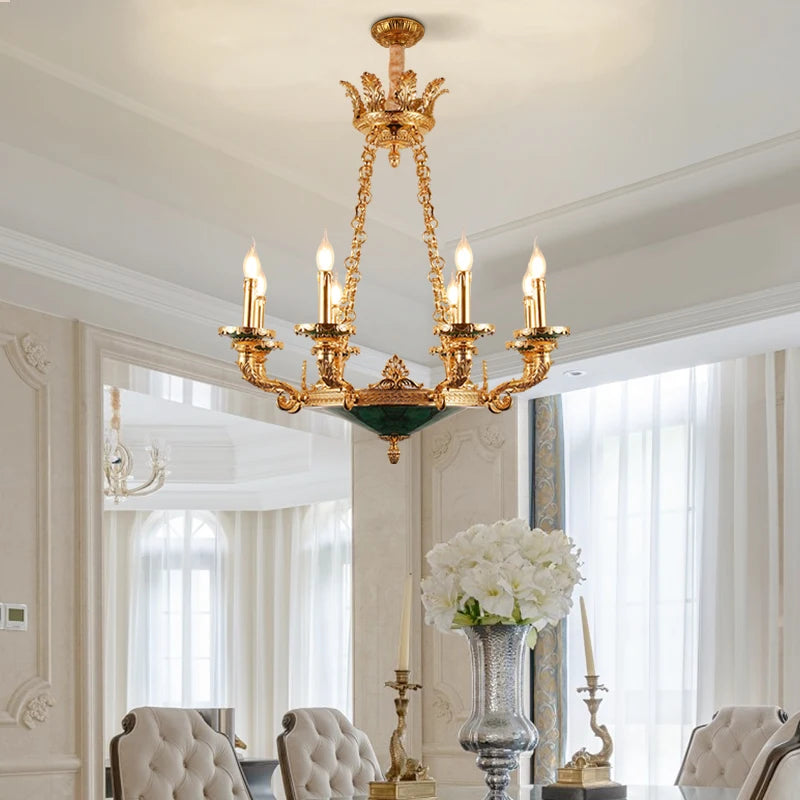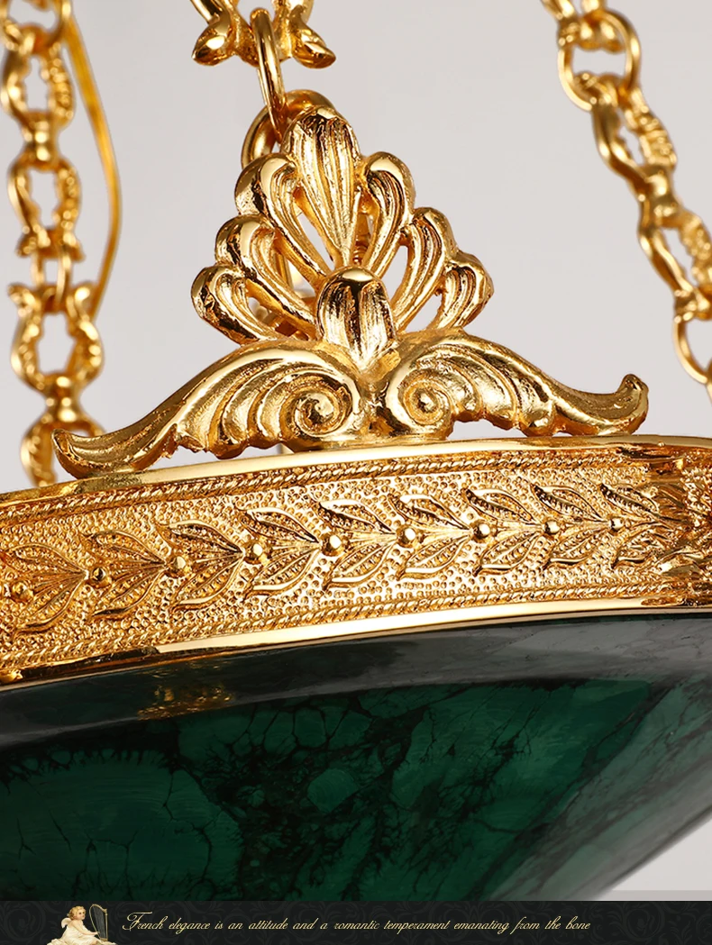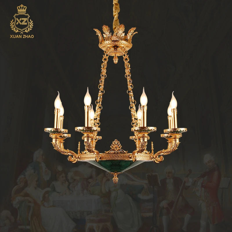 XUANZHAO European Classical Brass Lamp Zhongshan Light Natural Malachite Pendant Lamps Vintage Villa Living Room Chandelier