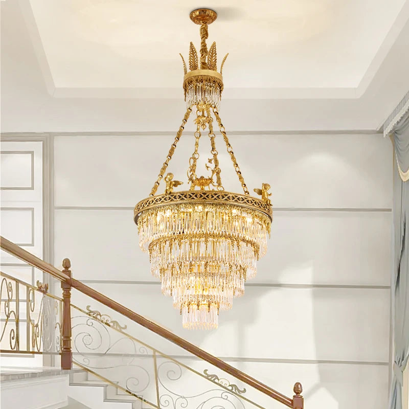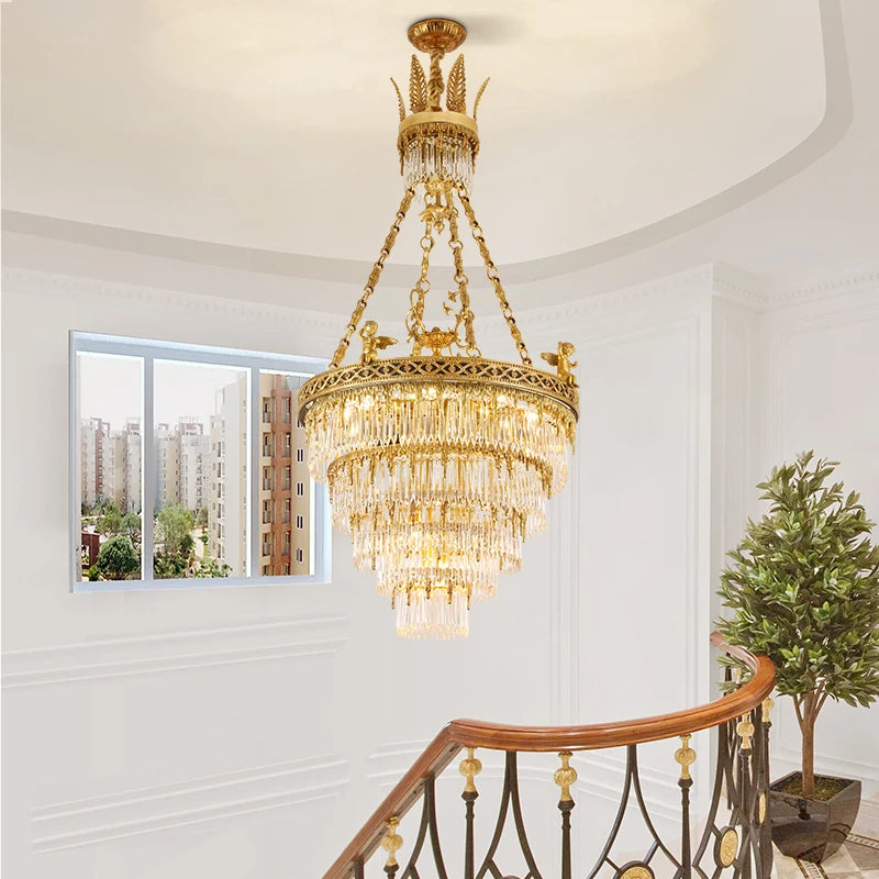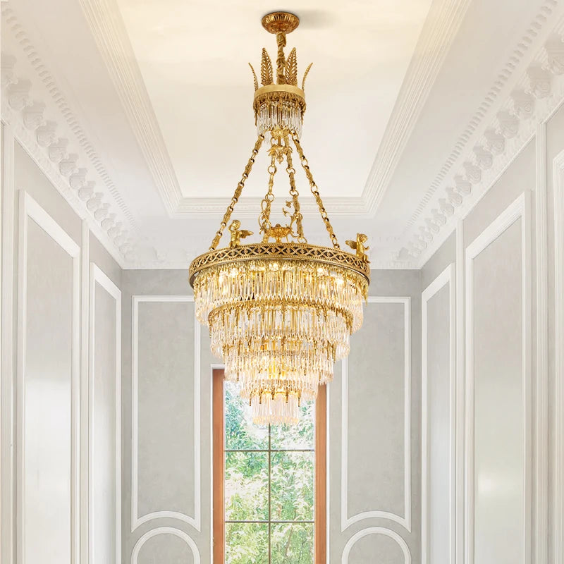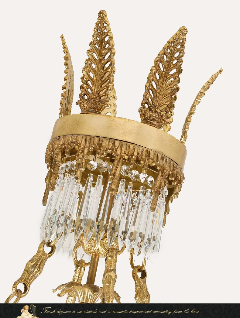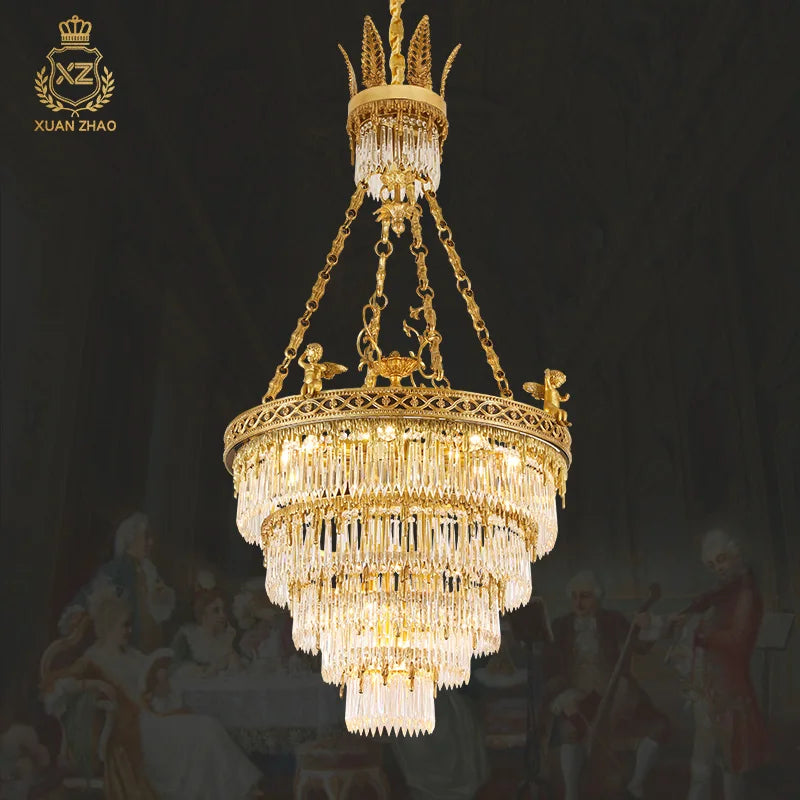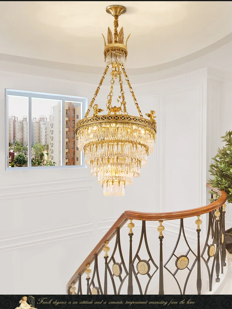 XUANZHAO European Full Copper Chandelier Lights French Luxury Living Room Bedroom Dining Room Lamp Villa Crystal Lamp