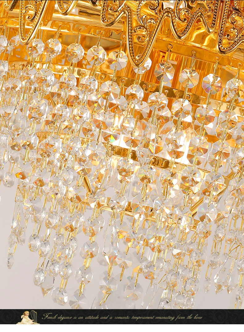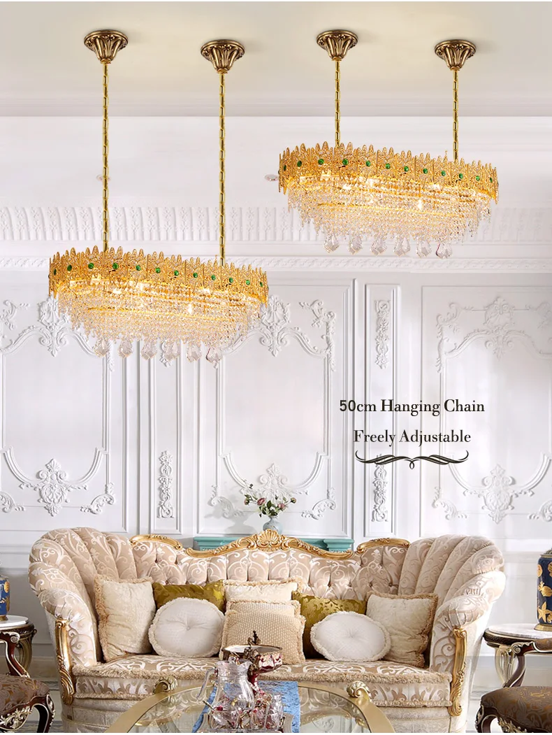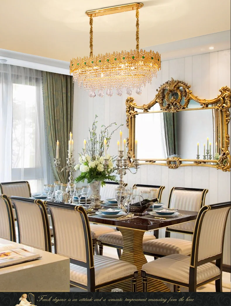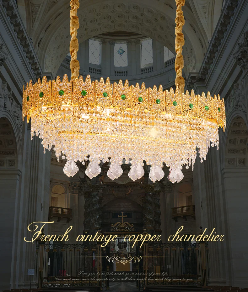 XUANZHAO European Restaurant Chandelier Light French Copper Rectangle Lamp Villa Luxury Crystal Personality Creative Lamp
