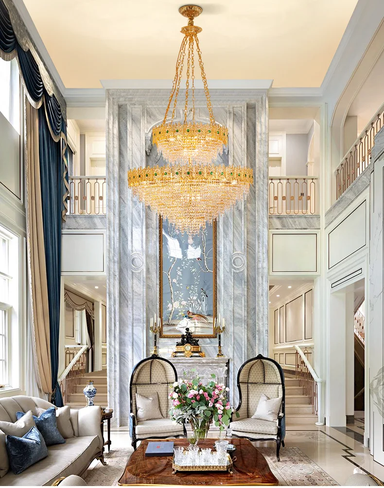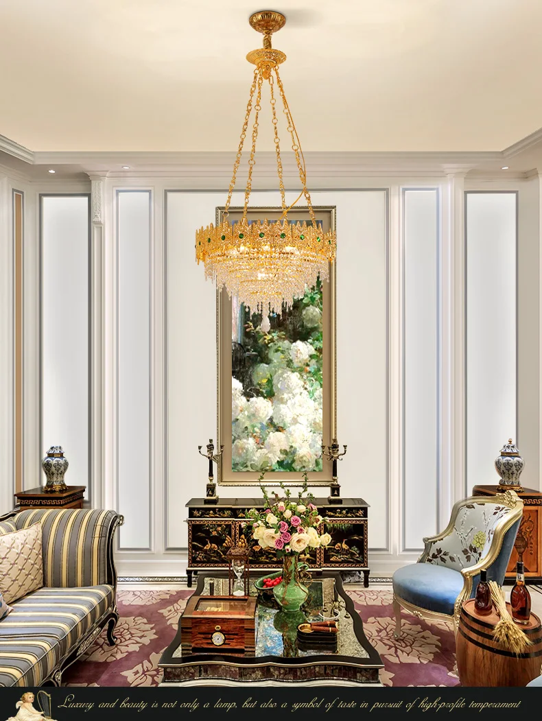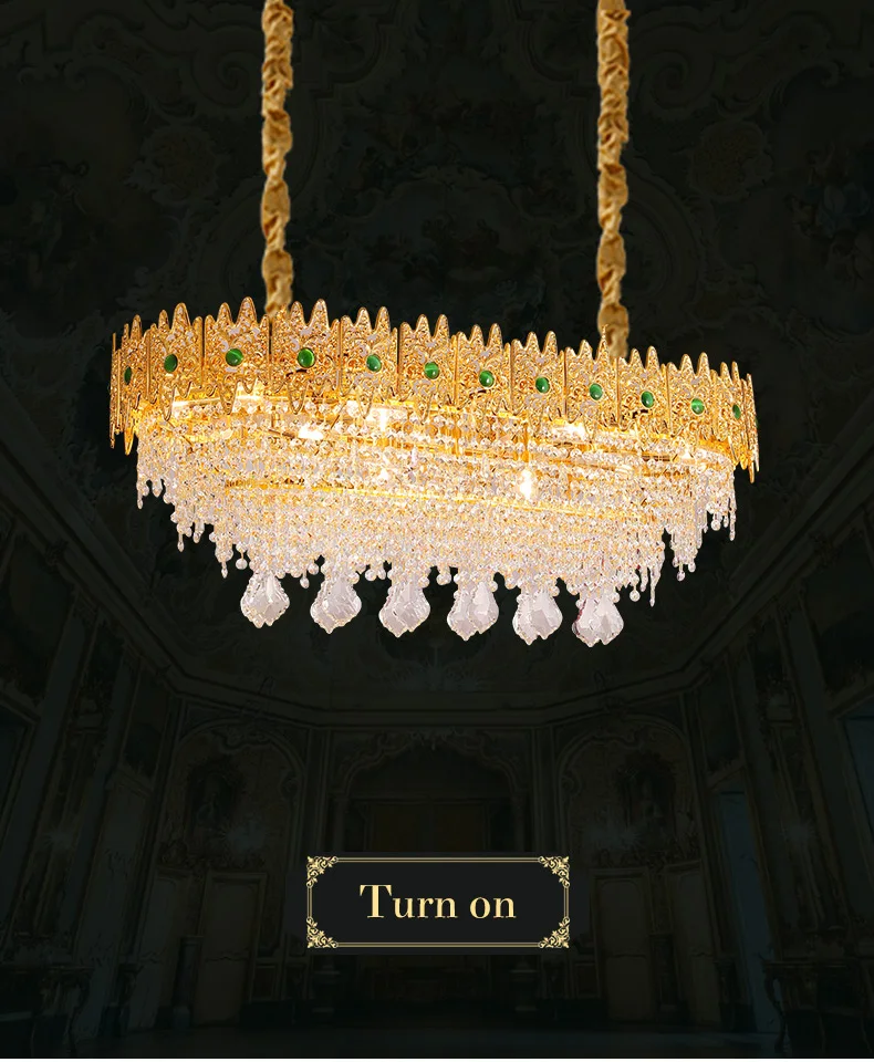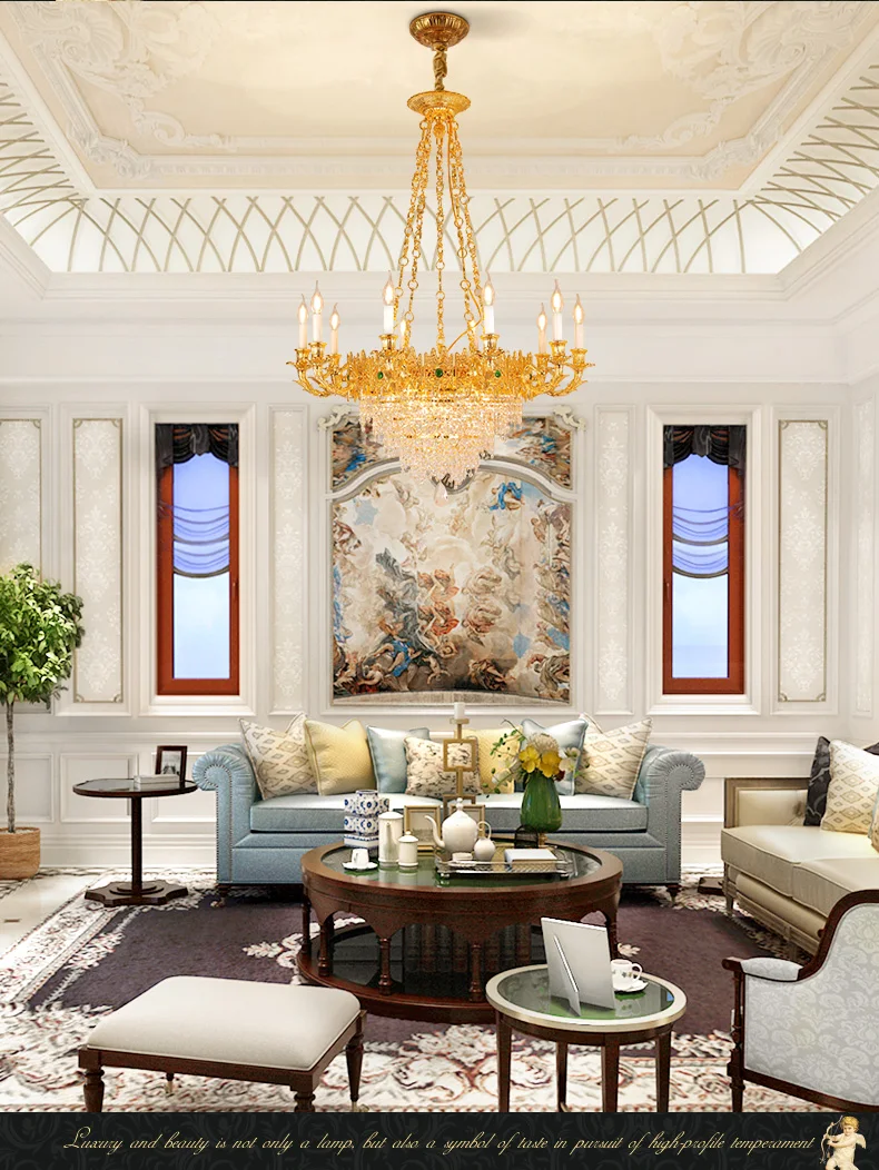 XUANZHAO European Restaurant Chandelier Light French Copper Rectangle Lamp Villa Luxury Crystal Personality Creative Lamp