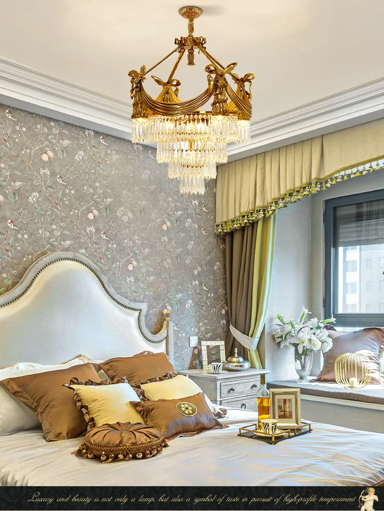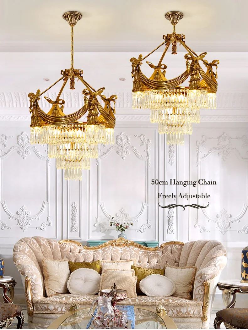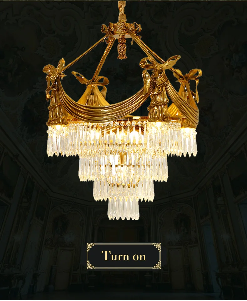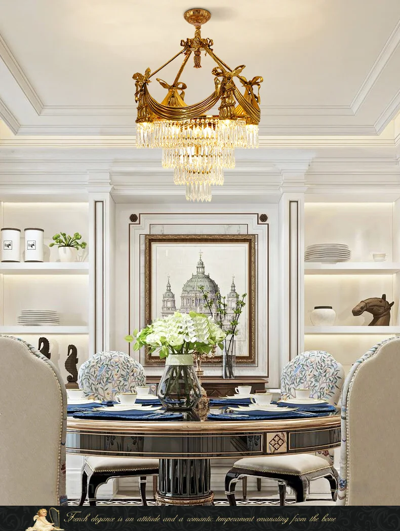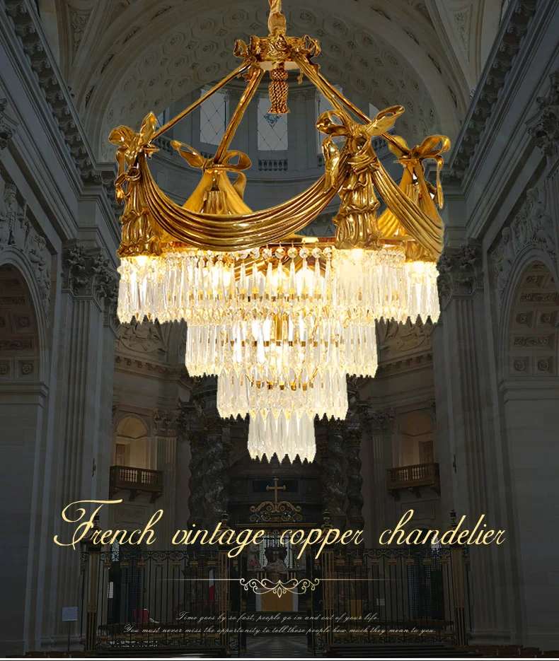 XUANZHAO French All Copper Crystal Light Luxury Villa Hotel Duplex Building Living Room Dining Room Study Chandelier