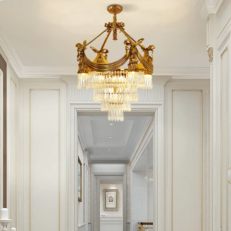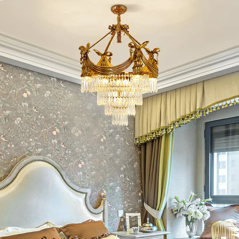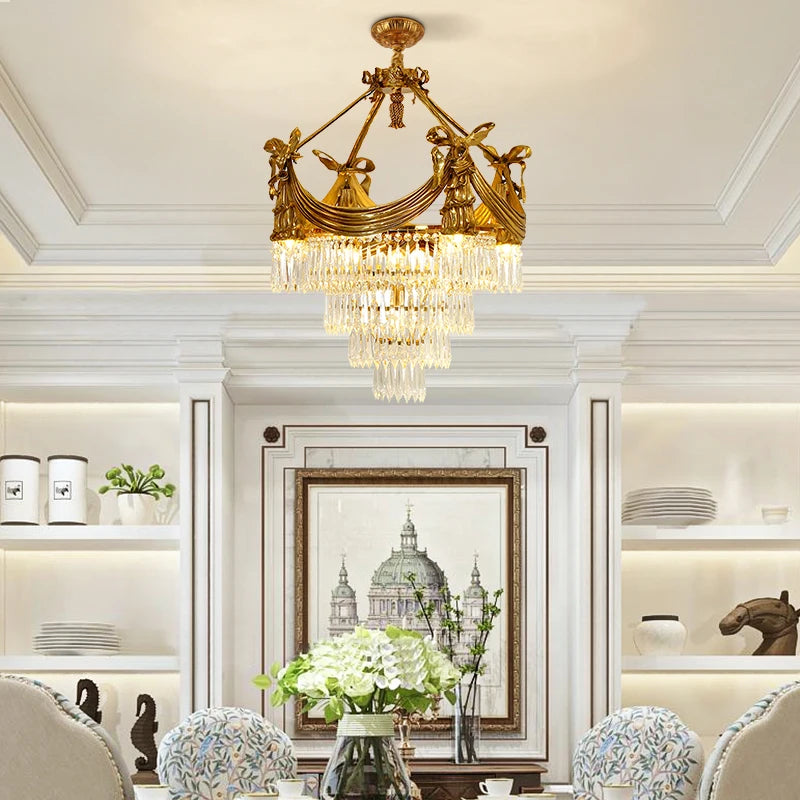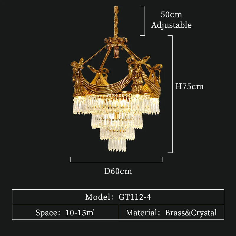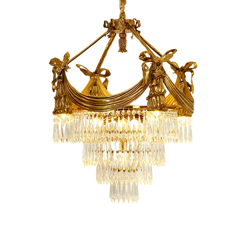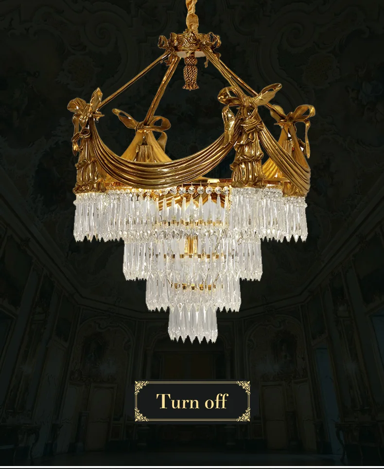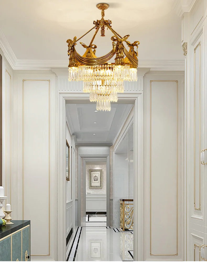 XUANZHAO French All Copper Crystal Light Luxury Villa Hotel Duplex Building Living Room Dining Room Study Chandelier