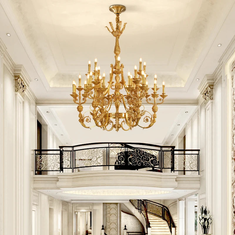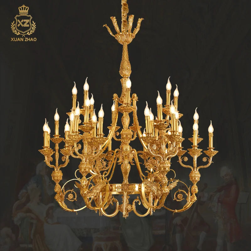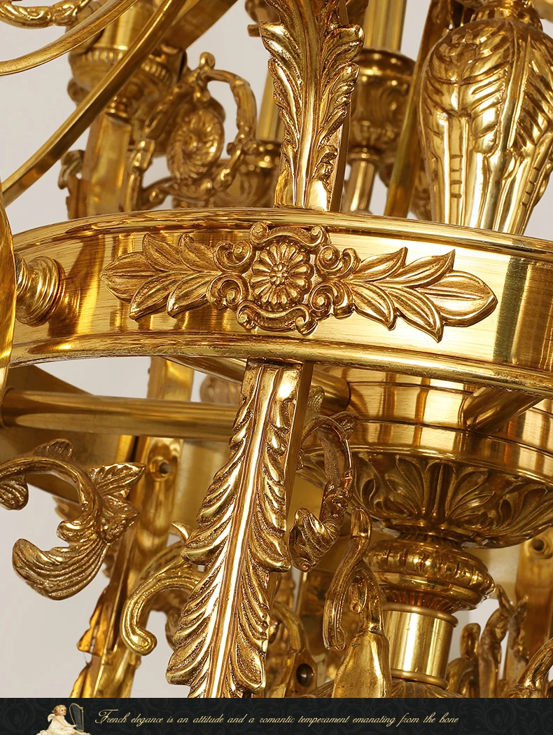XUANZHAO French Luxury Full Copper Chandelier Copper Vintage Villa Large Chandelier Living Room Lobby Hotel Lighting