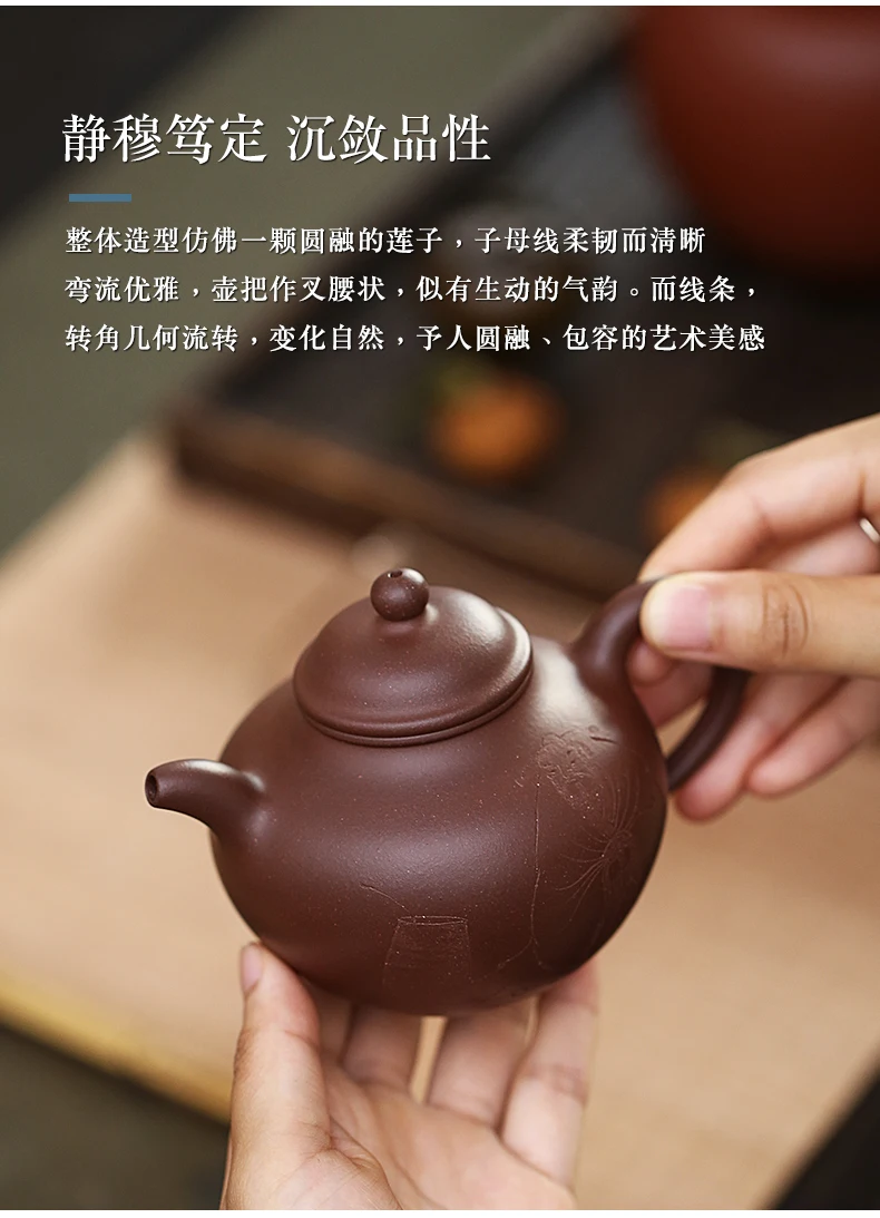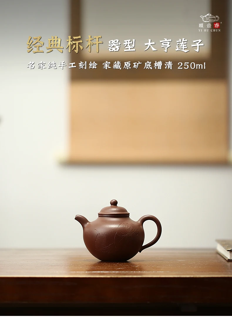 |Yihu spring] Yixing purple clay pot famous pure handmade tea pot raw ore authentic bottom trough Qing tycoon lotus seed