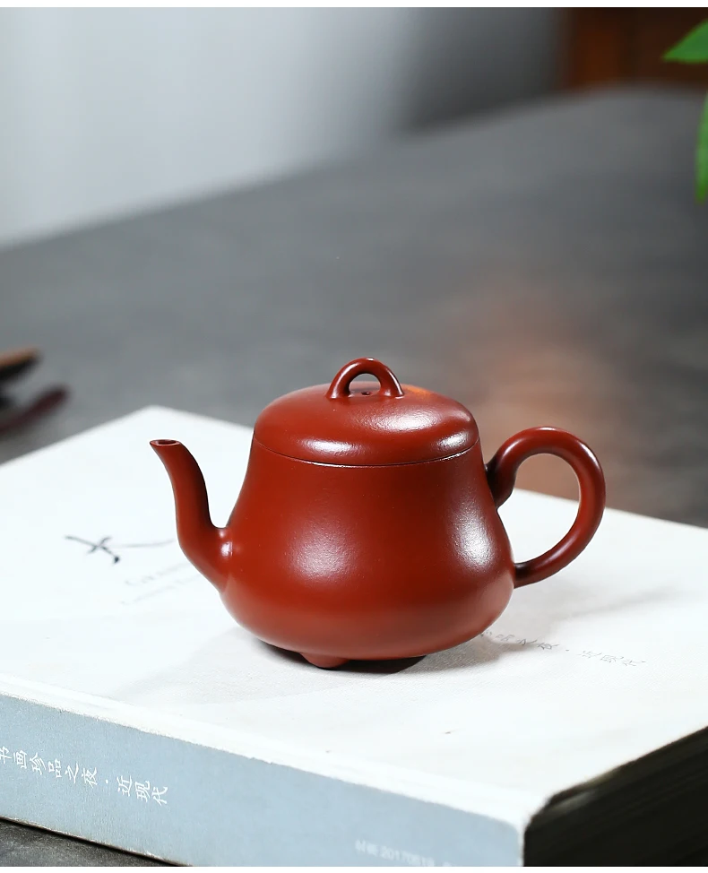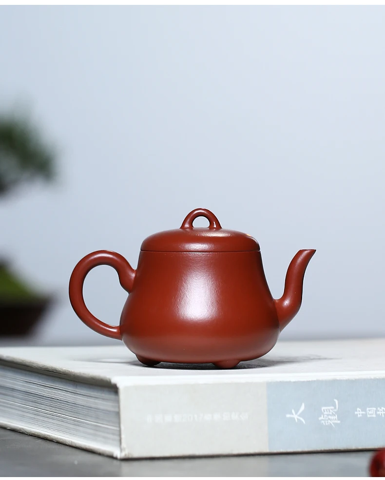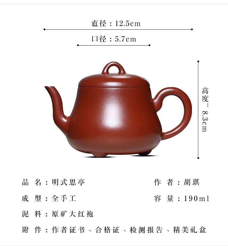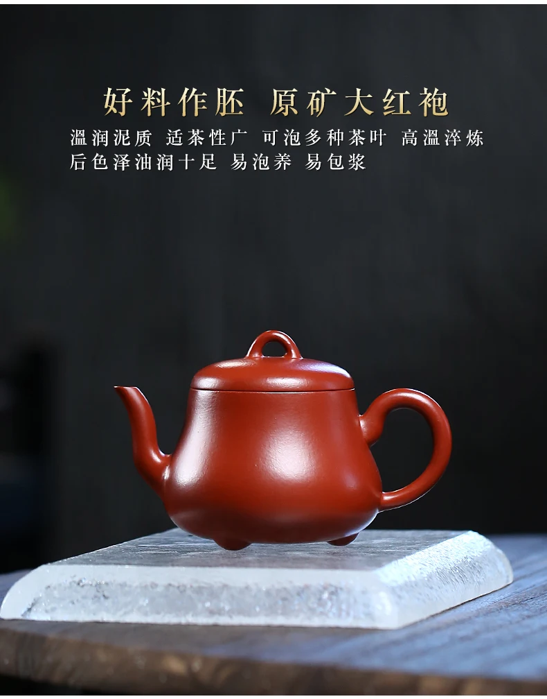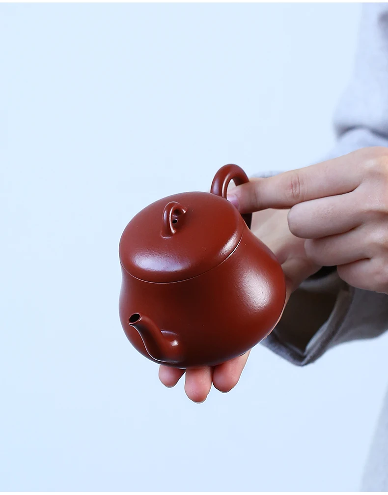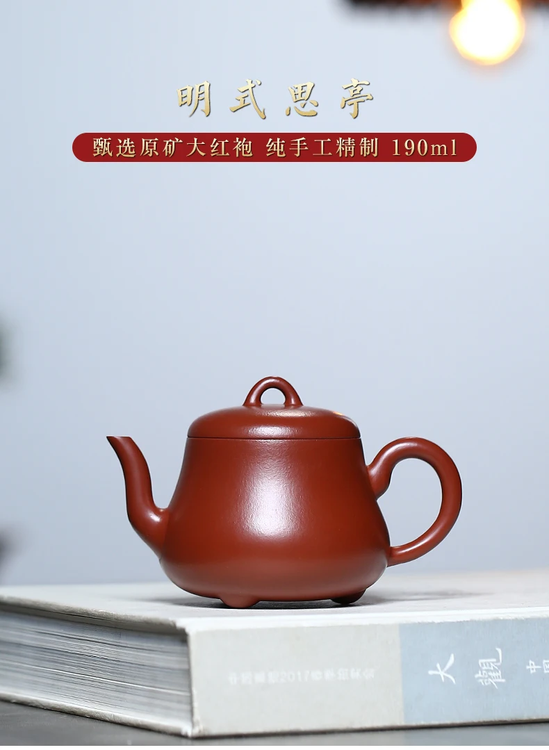 |Yihu spring Yixing purple clay pot master pure manual Kung Fu tea pot raw ore Dahongpao Ming style siting pot 190C