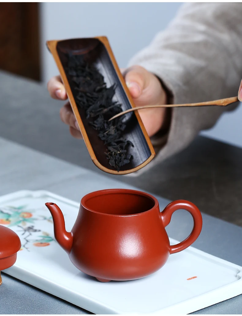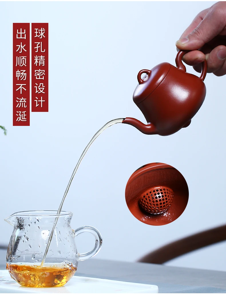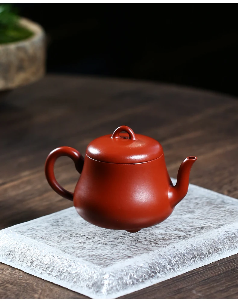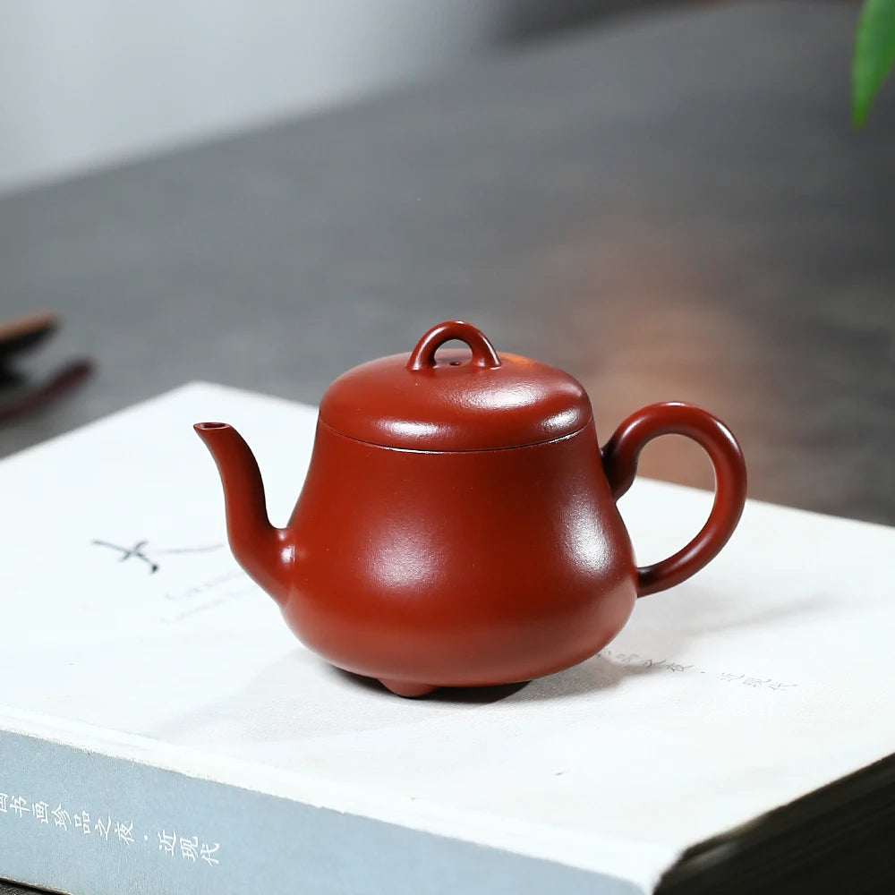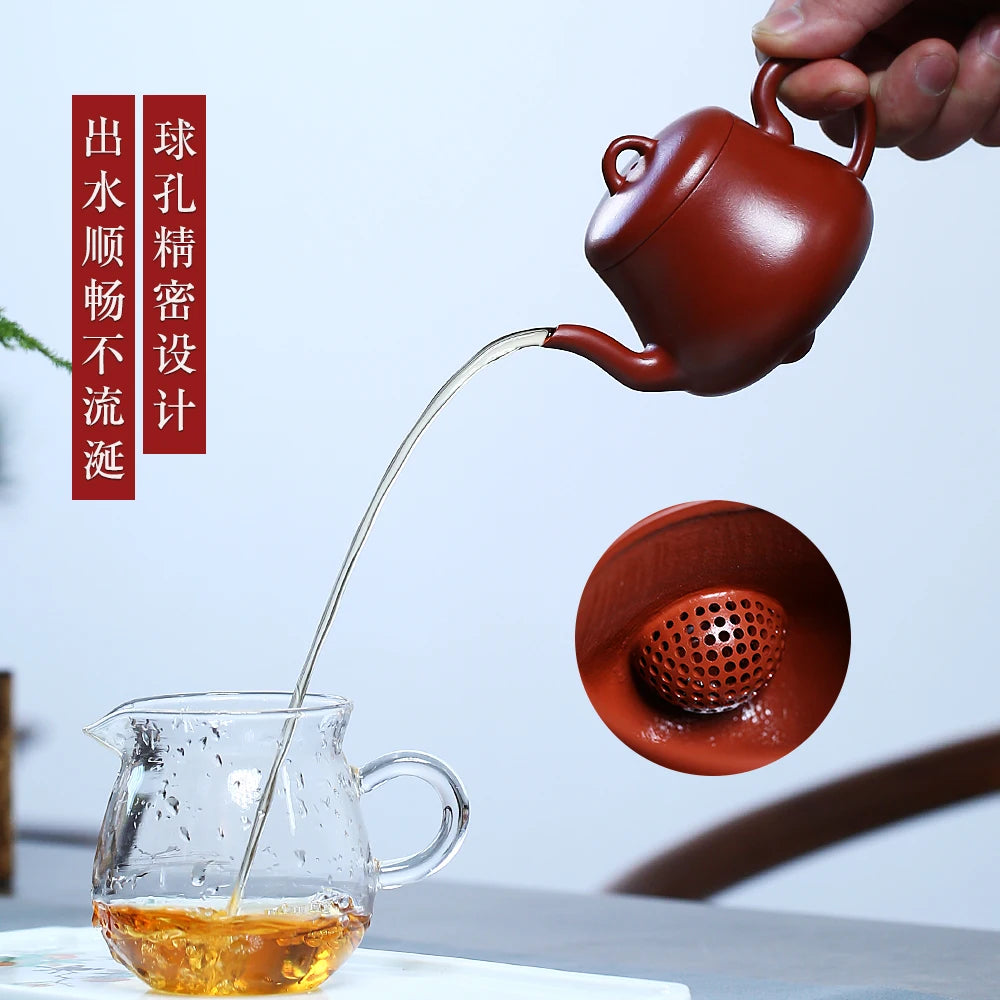 |Yihu spring Yixing purple clay pot master pure manual Kung Fu tea pot raw ore Dahongpao Ming style siting pot 190C