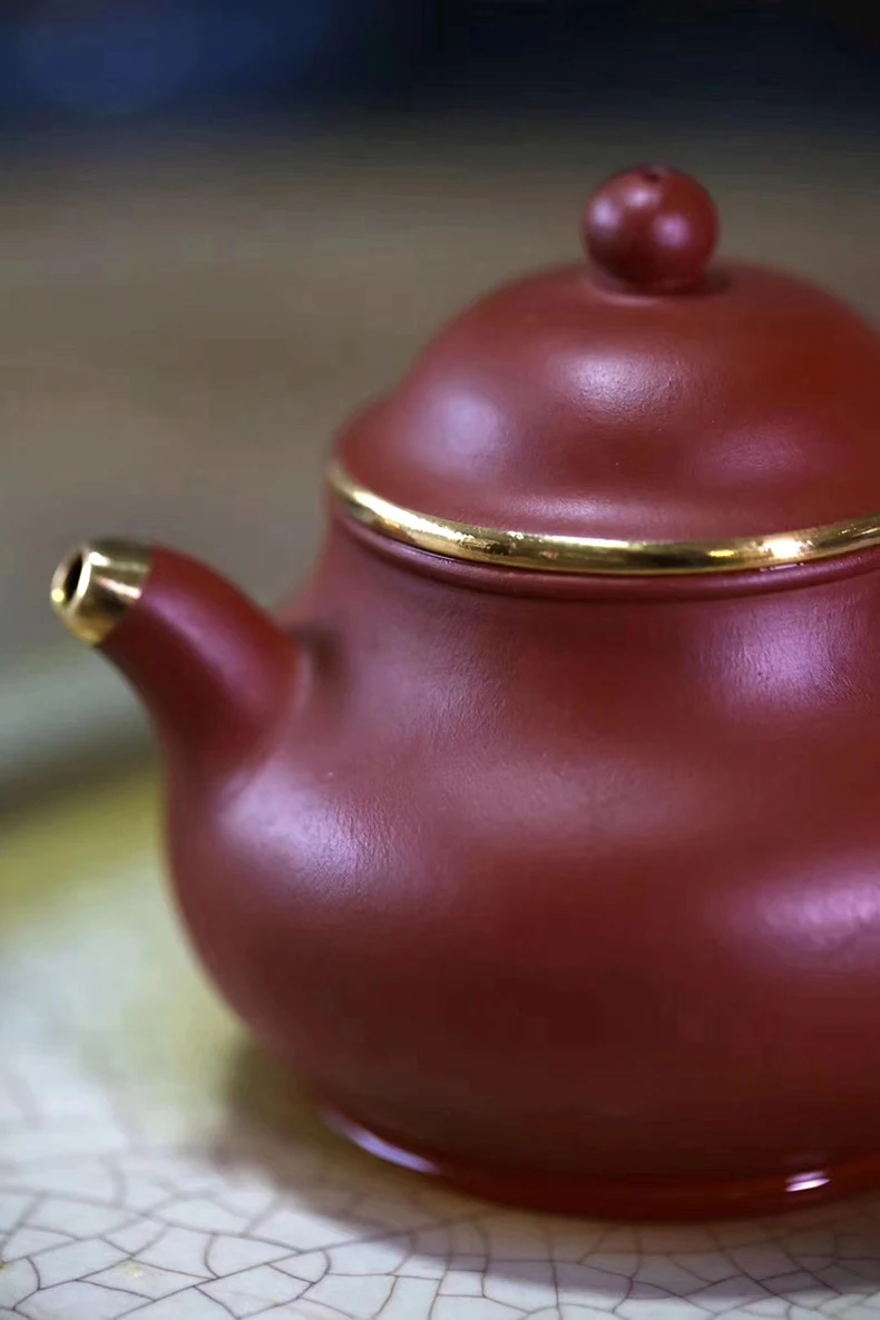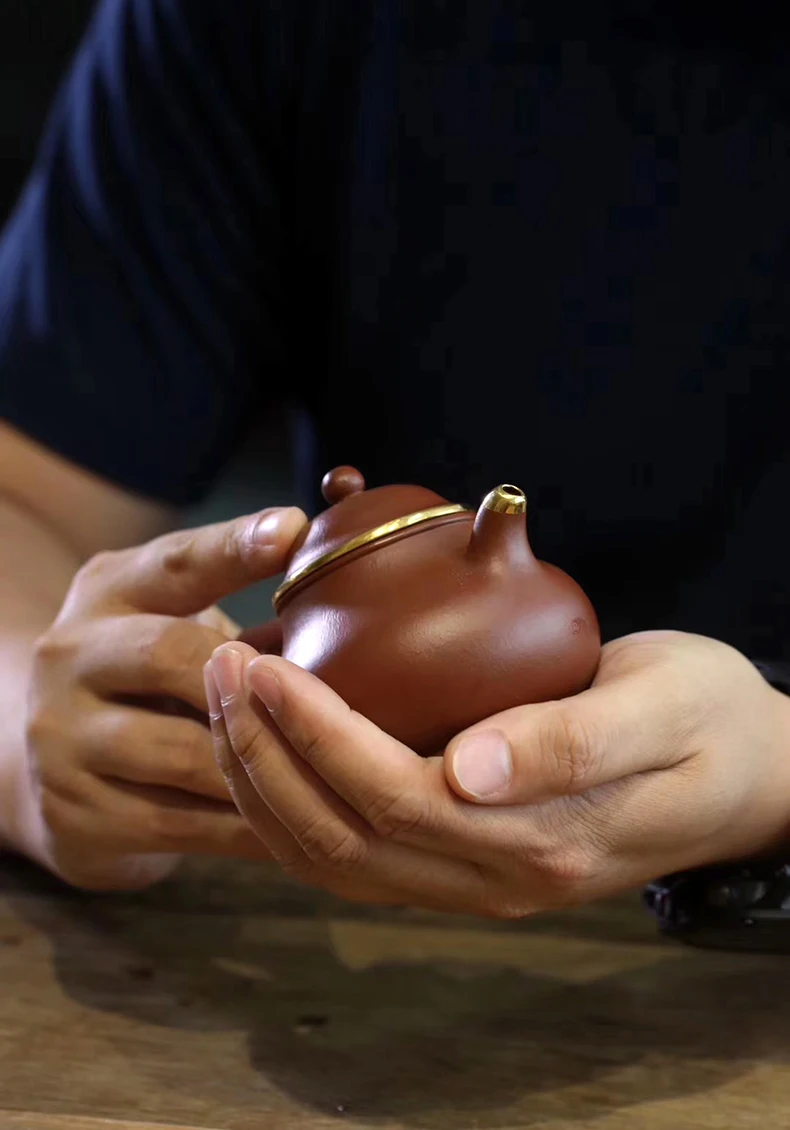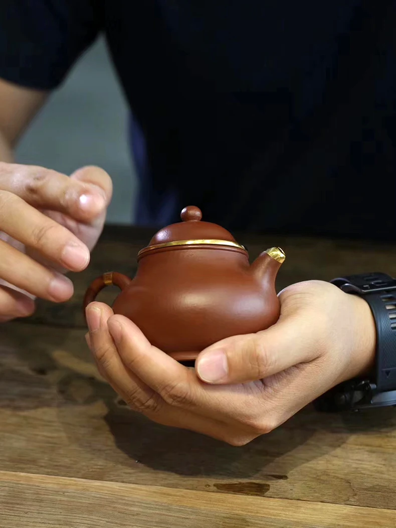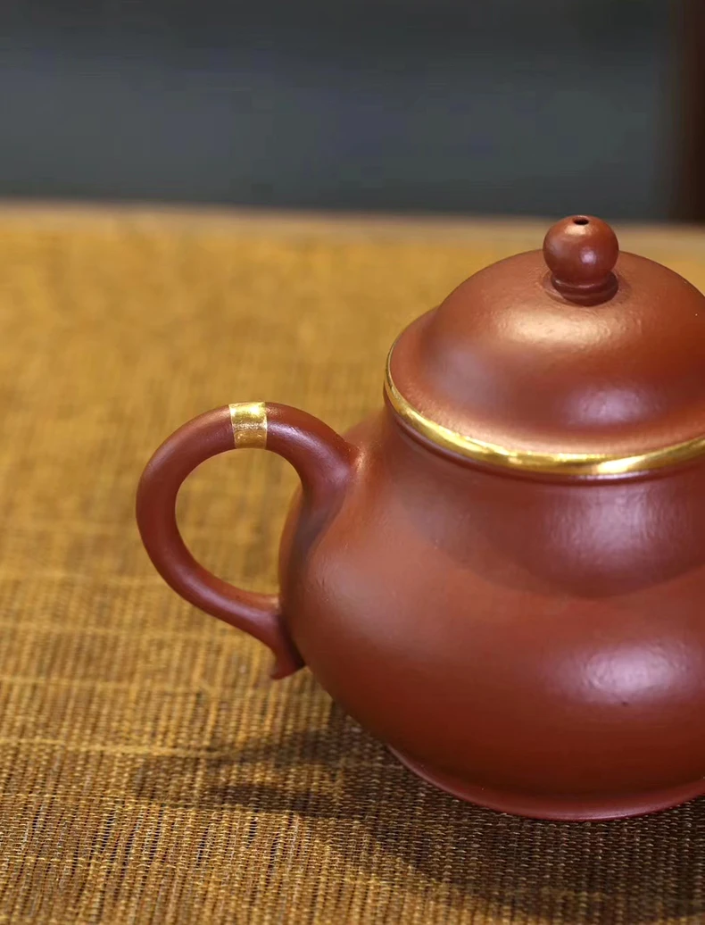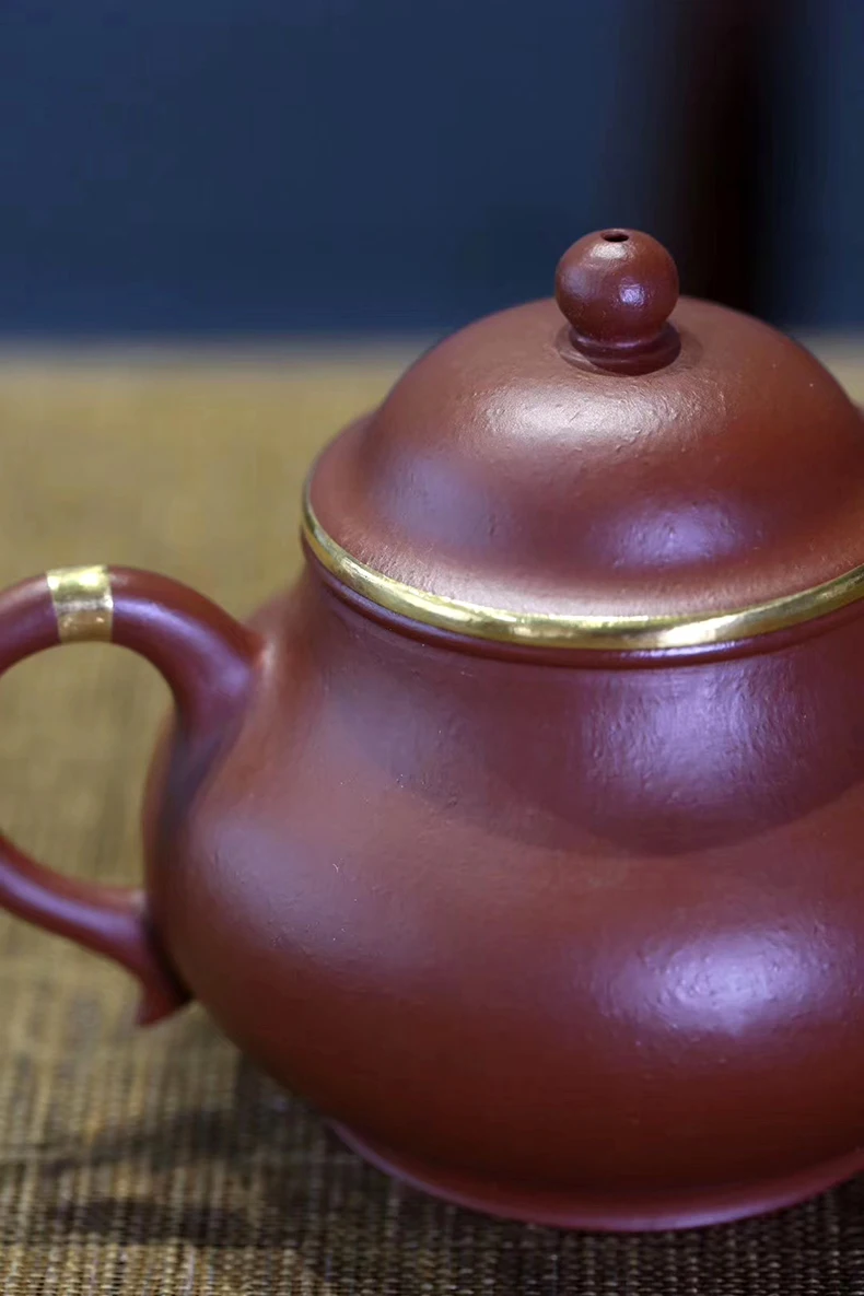 Yishuitang Yixing raw ore pure handmade purple clay pot family small coal mine vermilion clay pot bag 24K gold 180ml