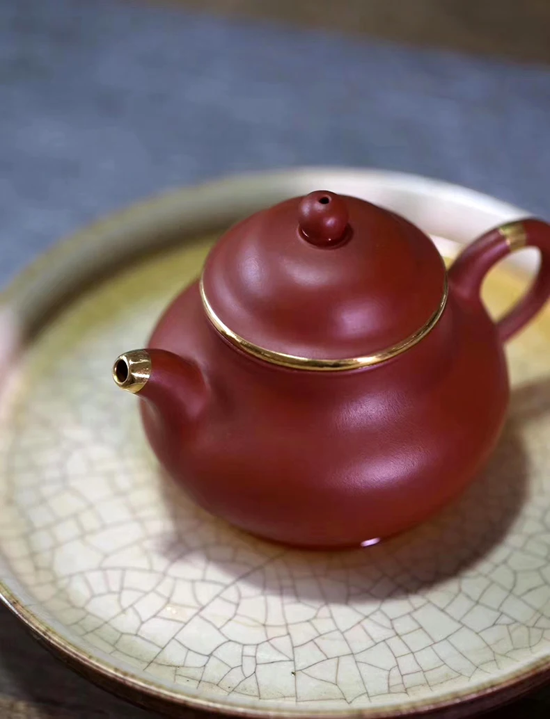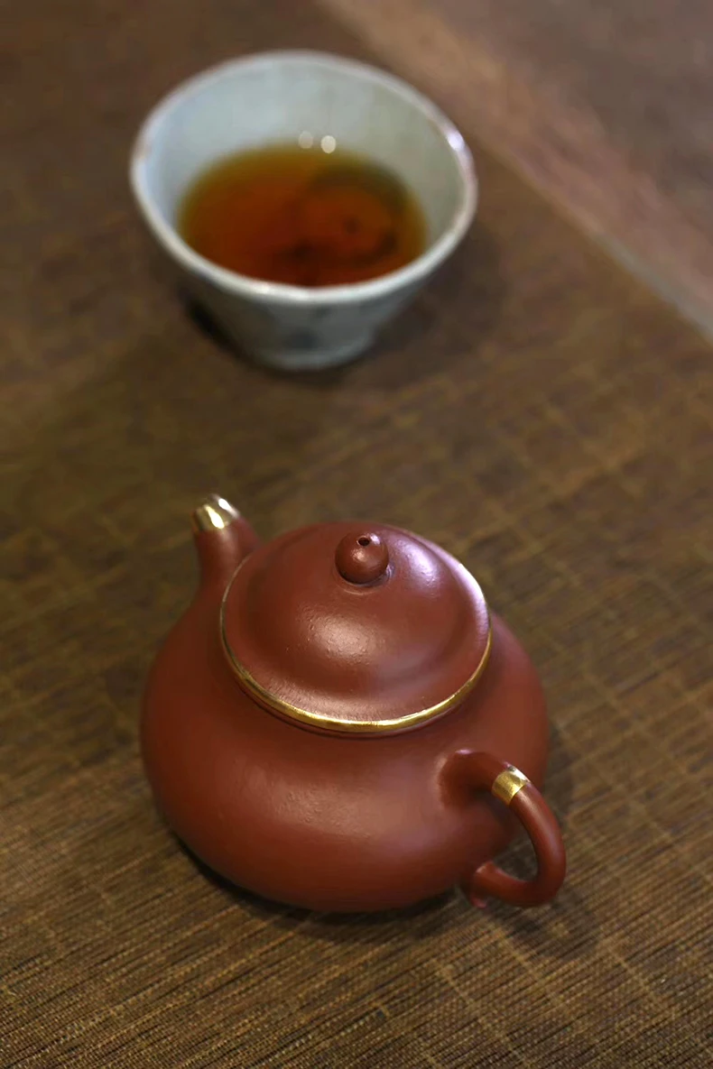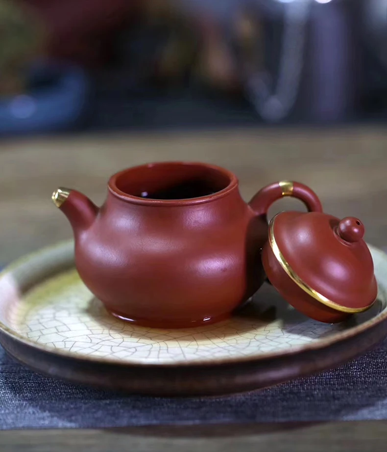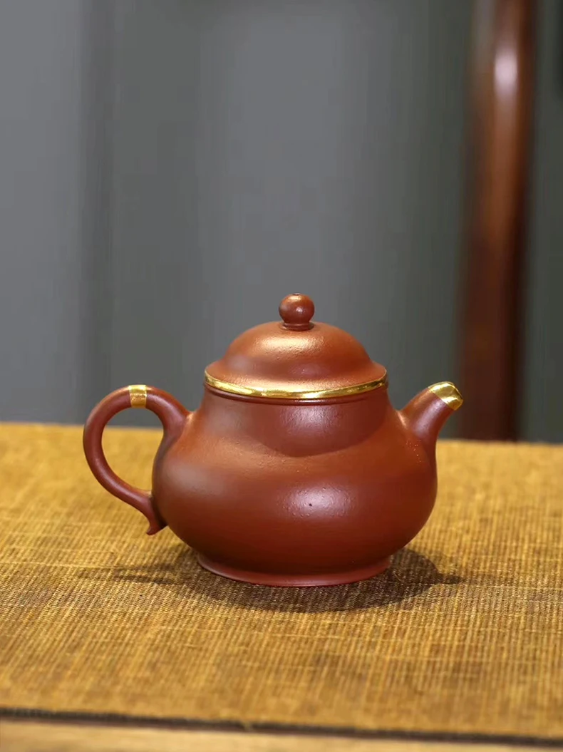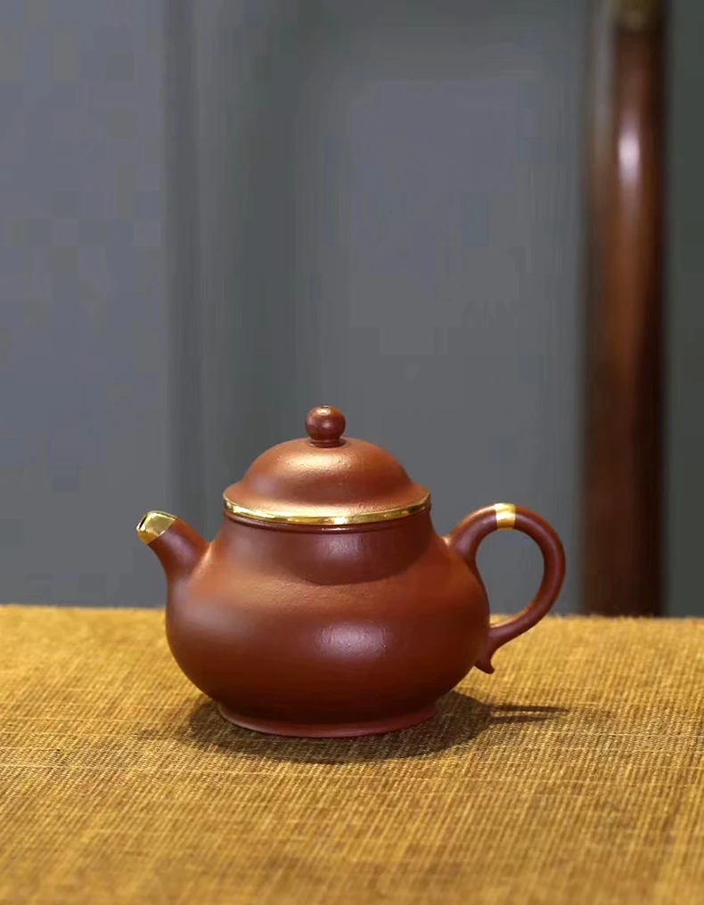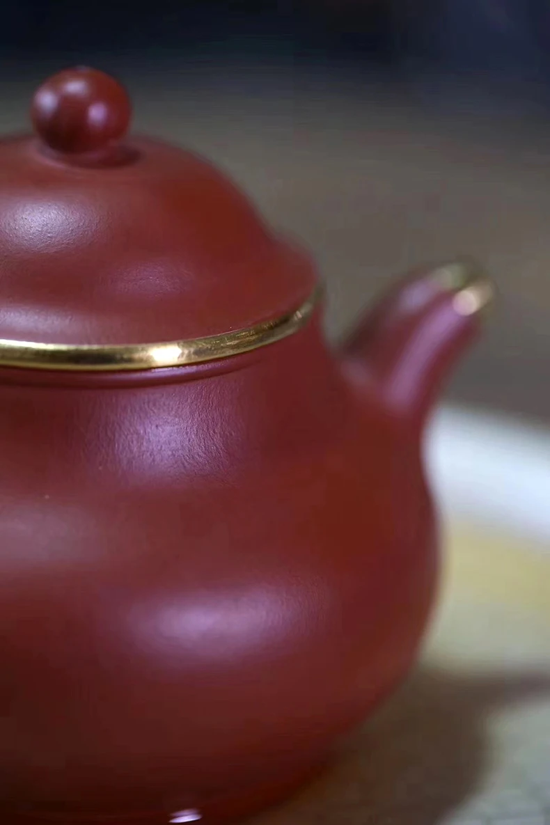 Yishuitang Yixing raw ore pure handmade purple clay pot family small coal mine vermilion clay pot bag 24K gold 180ml